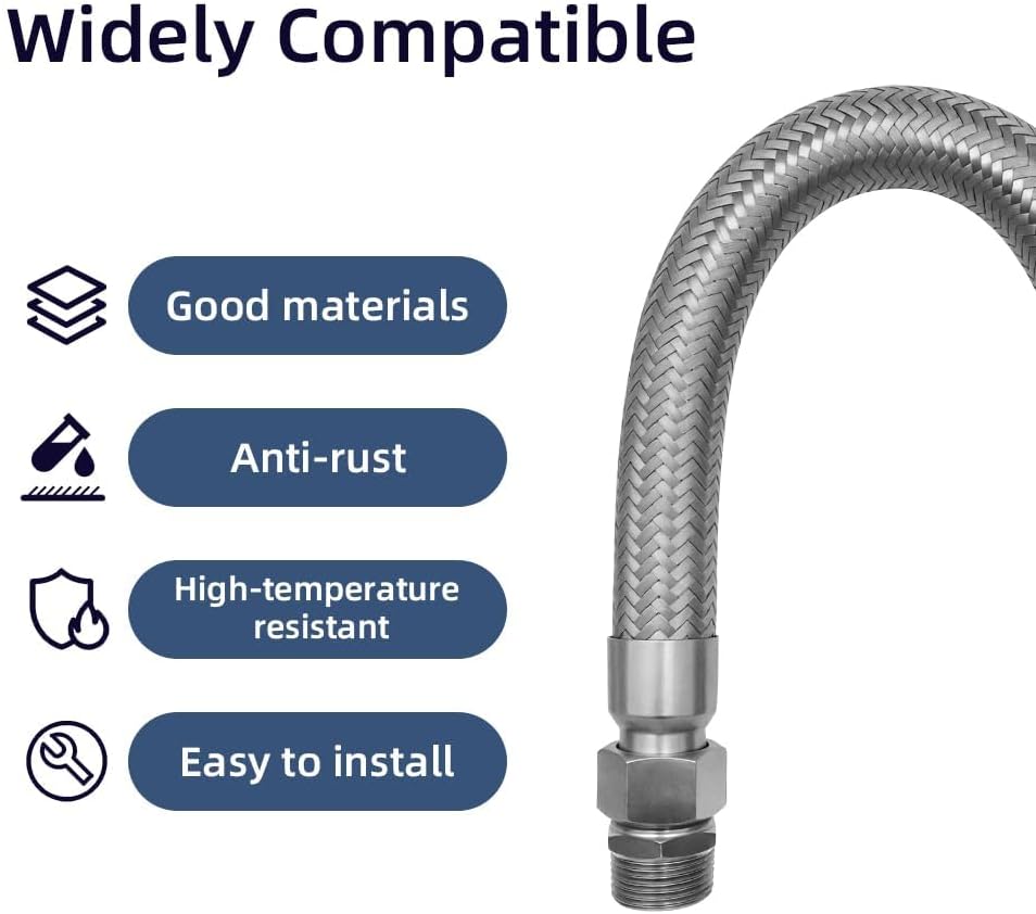 2.Hose with stainless steel braid and stainless steel corrugated two layers structure design, makes it quite stronger and long-lasting.