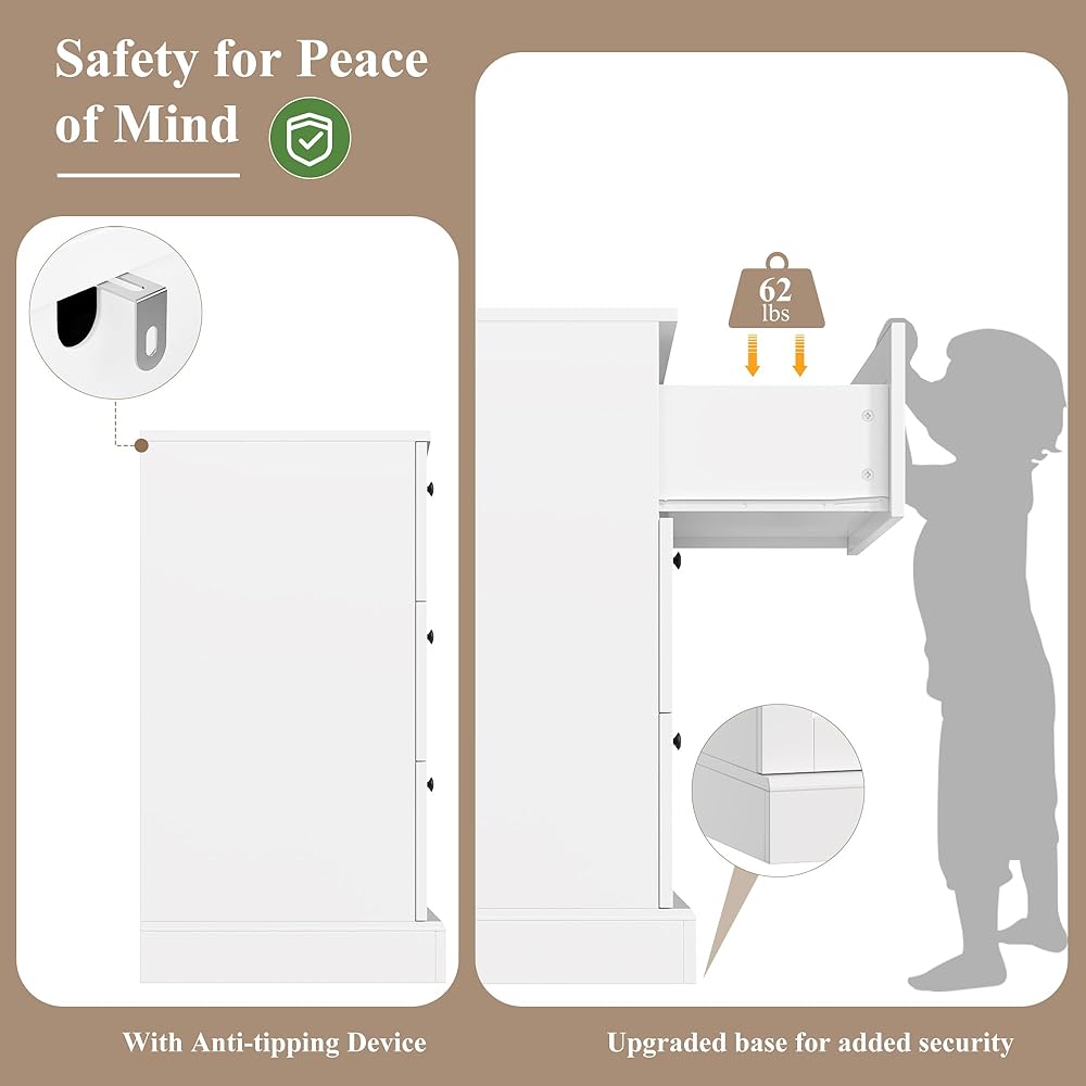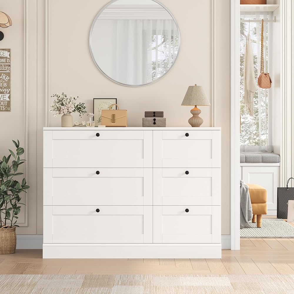 مساحة تخزين كبيرة: تتميز بـ 6 أدراج بمقاسين، توفر خزانة الملابس البيضاء هذه مساحة كبيرة للكتب والمحافظ ومستحضرات التجميل وتحمي خصوصيتك أيضًا، كما أن سطح الطاولة بعرض 42.5 سم يسمح بسهولة الوصول إلى العناصر المستخدمة كثيرًا مع الحفاظ على غرفتك مرتبة ومنظمة.