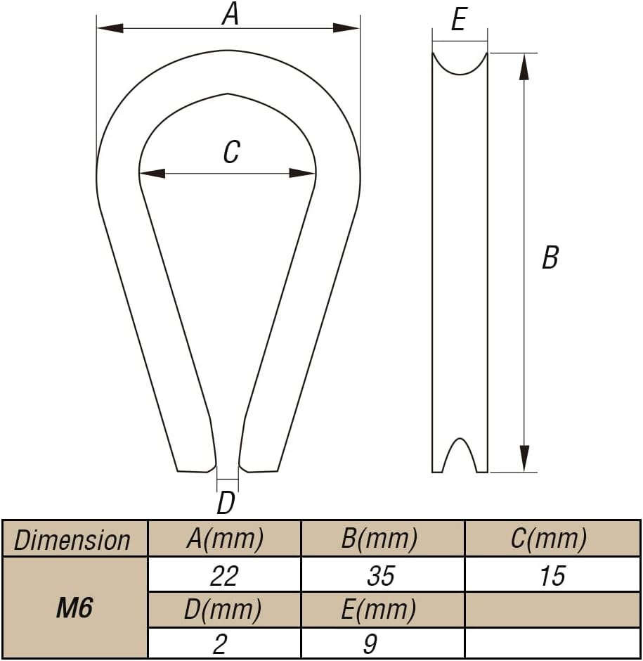 الأبعاد: M6، مناسب لقطر الحبل السلكي من 7/32 بوصة - 1/4 بوصة