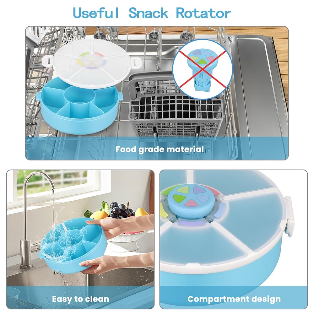 صندوق الوجبات الخفيفة القابل لإعادة الاستخدام مع حاوية دوارة للوجبات الخفيفة مع موزع وغطاء مكون من 5 أقسام، وغطاء فتح مطابق للألوان، خالٍ من مادة BPA وPVC، للمنزل والمدرسة والسفر (عبوة واحدة - أزرق)