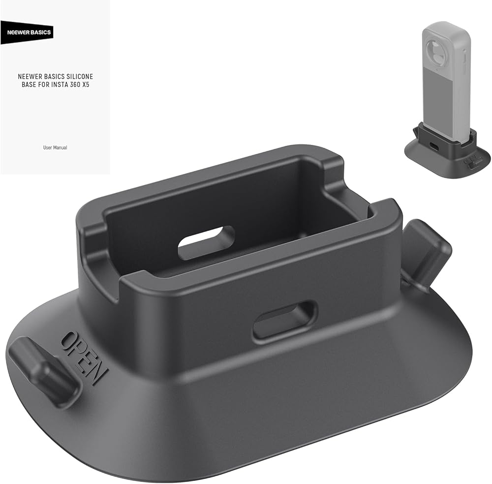 NEEWER AC036 is a compact and simple silicone camera base, exclusively compatible with Insta360 x5, providing stable tabletop support for vlogging and filming. Made from soft, nonslip silicone, it protects your camera from scratches while ensuring full access to the USB Type C charging port. Its flexible silicone construction allows for easy insertion and removal, making your shooting process more efficient. Specifications Model: AC036 Item Type: Silicone Camera Stand Color: Black Compatibility: Compatible with Insta360 x5 Application: Vlogging/Filming Main Features: Nonslip/Anti Scratch Main Material: 0.71oz/20g Dimensions: 3.43"x2.44"x1.06"/8.7x6.2x2.7cm Package Contents 1 x Silicone Camera Stand