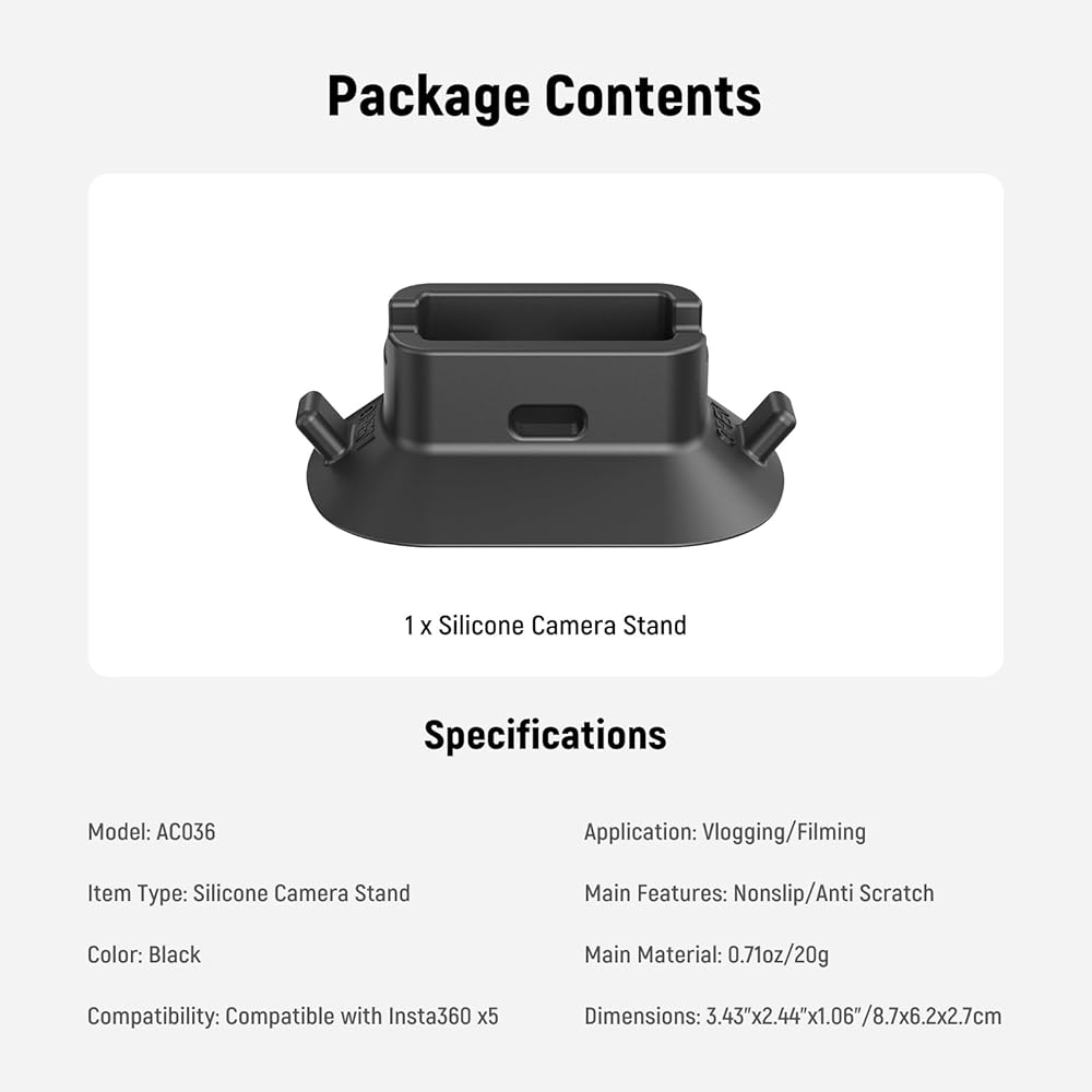 【Custom Fit】 Exclusively compatible with the Insta360 X5, the AC036 action camera stand is customized to provide a perfect fit, keeping your gear stable and upright on any desktop for easy shooting and recording. Compatible with Insta 360 x5 as content creator essential photography accessories and influencer must have videography gear