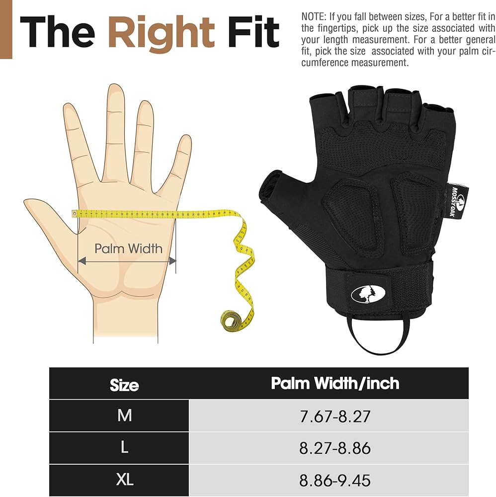 Mossy Oak Fingerless Tactical Gloves, Cycling Gloves with Hard Knuckle for Outdoor Sports Training Paintball Hunting Motorcycling