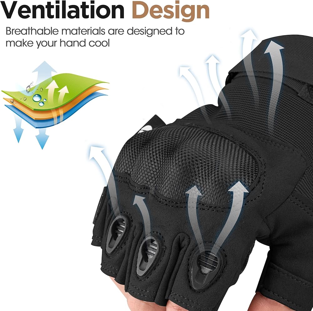 Flexible & Comfortable: These half-finger tactical gloves shield your hands from potential harm and provide enough flexibility to move your fingers quickly. They are easy to wear and have adjustable straps to fit them securely