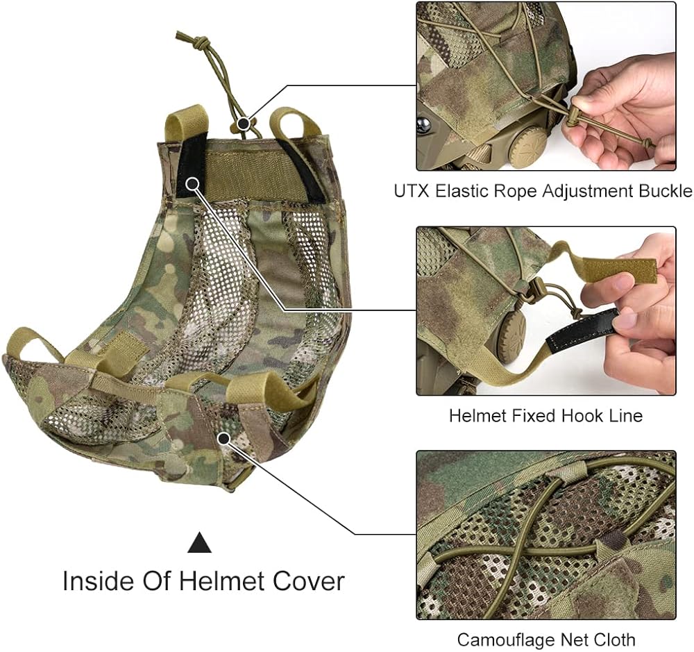 جودة عالية: غطاء الخوذة التكتيكية مصنوع من مادة خام نايلون 500D مستورد من أمريكا، وهو مضاد للبقع ومقاوم للماء ويمكن استخدامه في مجموعة متنوعة من السيناريوهات التكتيكية. يمكن لإبزيم التعديل عالي الجودة UTX ضبط الحبل المطاطي بشكل فعال لتأمين الخريطة والأشياء الأخرى.