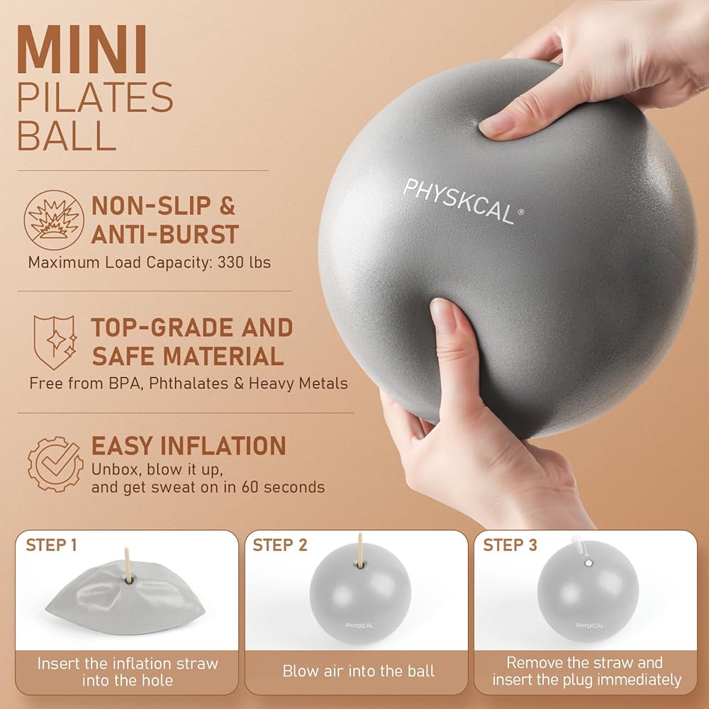 • Safe & Non-Slip Mini Pilates Ball- Made from top-grade BPA-free material with 330 lbs load capacity, this anti-burst Pilates ball provides secure inflation in 60 seconds and ensures stability during core exercises and physical therapy routines.