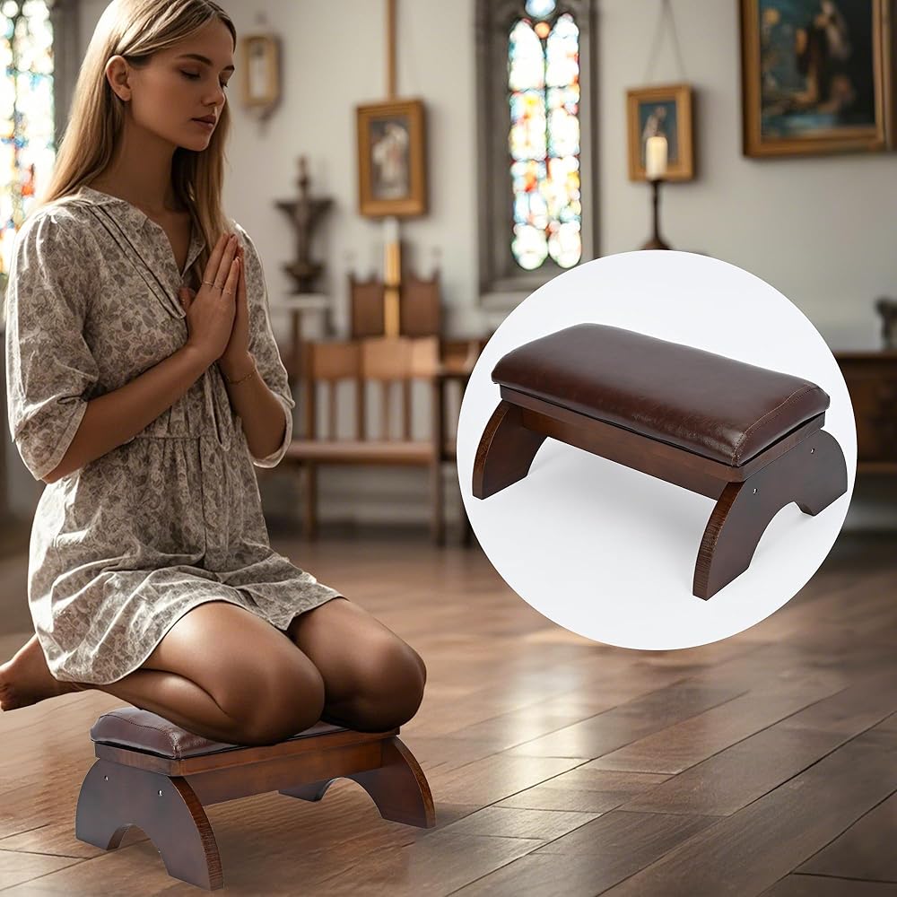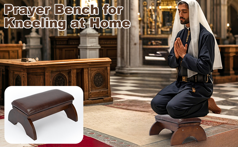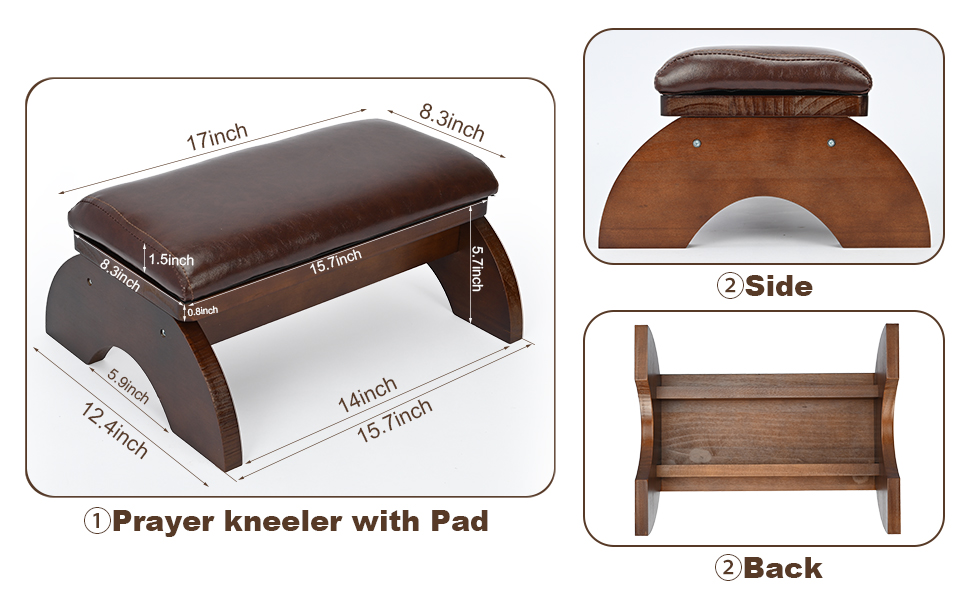مقعد ركوع قوي: مقاسات الركوع هذه للصلاة: 17 بوصة × 8.3 بوصة × 1.5 بوصة (وسادة)، 15.7 بوصة × 12.4 بوصة × 5.7 بوصة (مقعد خشبي)، الوسادة العلوية لها سطح اتصال كبير مع مقعد سفلي، يمكنها حماية ركبتك بالكامل، وهيكل المقعد ثابت، ولن يهتز أو يميل بسهولة، ويبقيك في تمثال آمن.