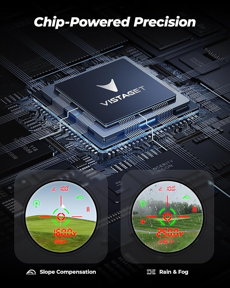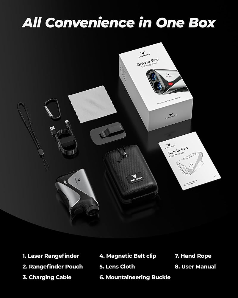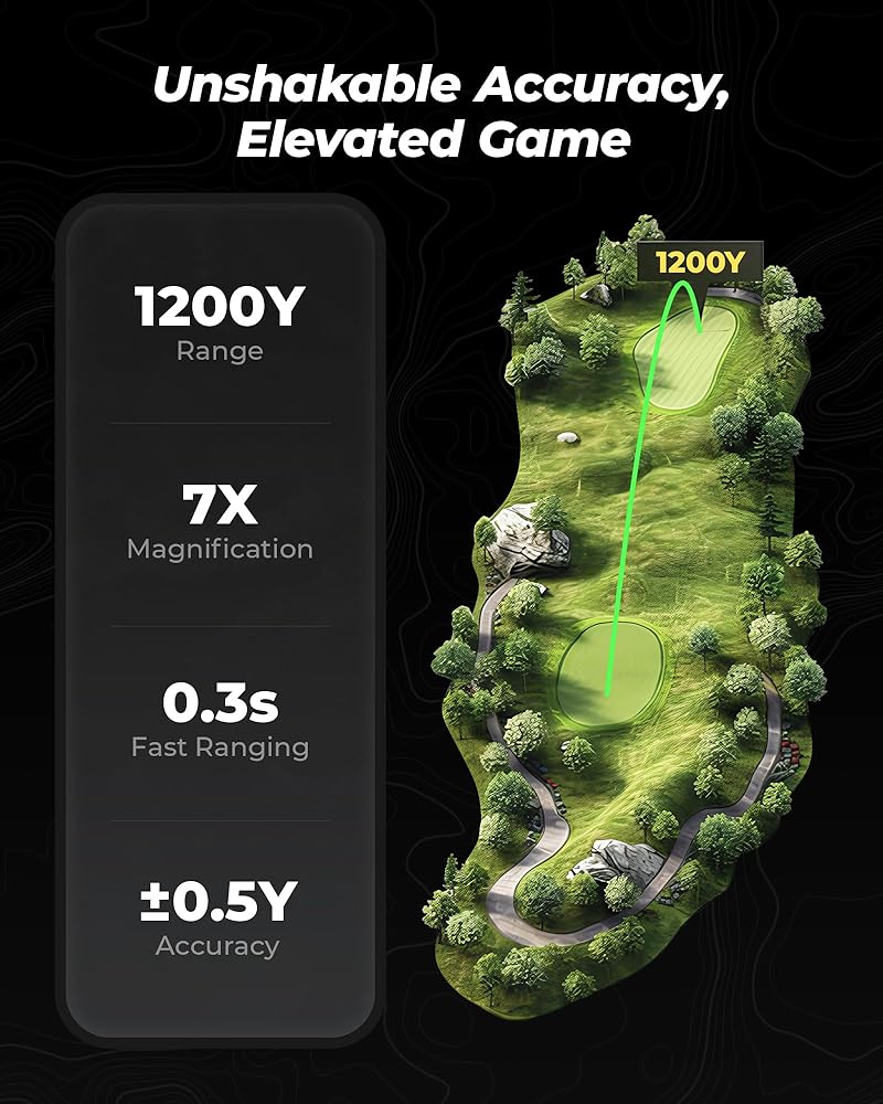 [1200 ياردة وتكبير 7X - سريع وموثوق] يوفر محدد المدى للجولف Golvia Pro ذو المنحدر نطاق 1200 ياردة وتكبير 7X بدقة ±0.5Y. يعمل قفل علم الاهتزاز بمقدار 0.3 ثانية على تقليل أخطاء القراءة على الأهداف الرئيسية، مما يجعل محدد المدى للجولف هذا أداة سريعة وموثوقة للاعبين الذين يهدفون إلى الدقة الدقيقة.