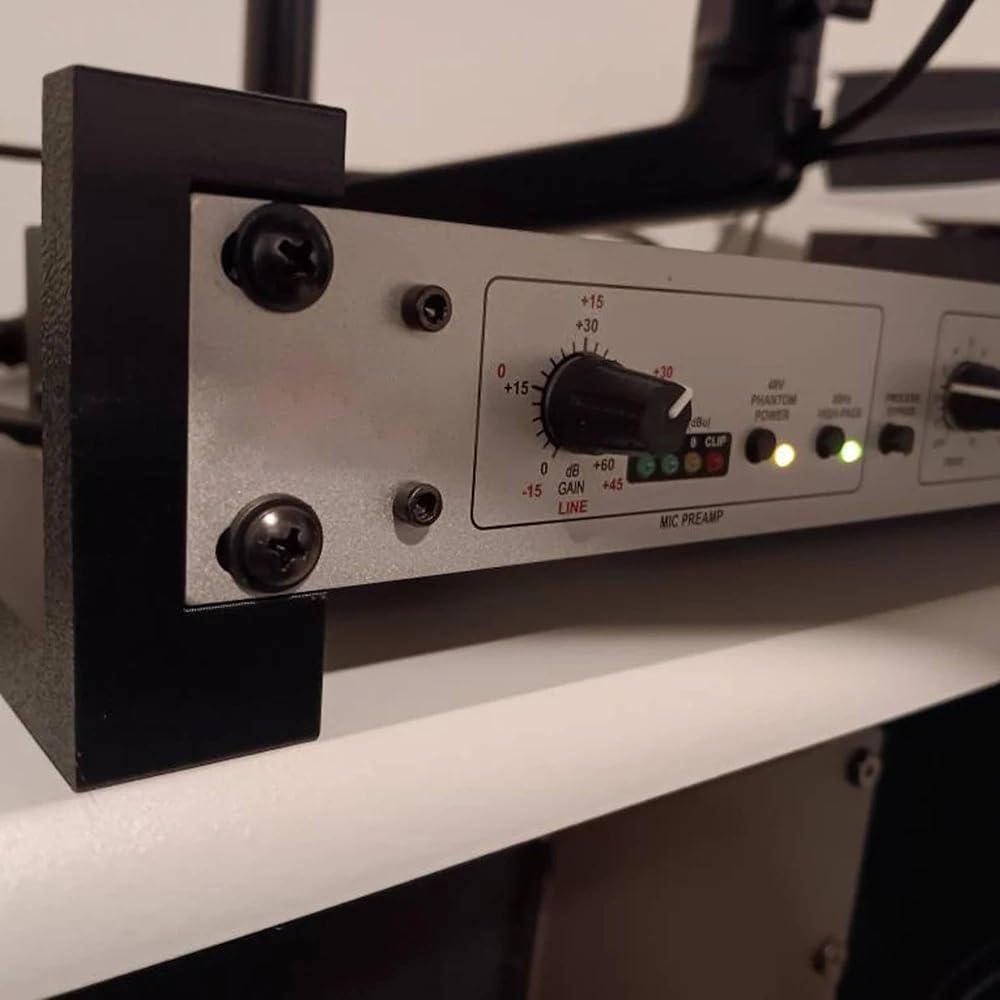 Elevate your workspace with the Compact 2U Studio Equipment Rack Pair—a sturdy, ready-to-ship solution crafted from black PETG right here in the USA. Featuring a smart 20° tilt and full hardware kit, this rack pair is built for performance and convenience. With a classic 19″ rack width and only 4″ depth, it's perfect for shallow gear like audio interfaces, network patch bays, and DAW controllers. The included 10‑32 screws and nuts mean you're ready to mount instantly—no extra parts needed. Included: 2× sloped PETG rack stands Complete 10‑32 screw & nut kit