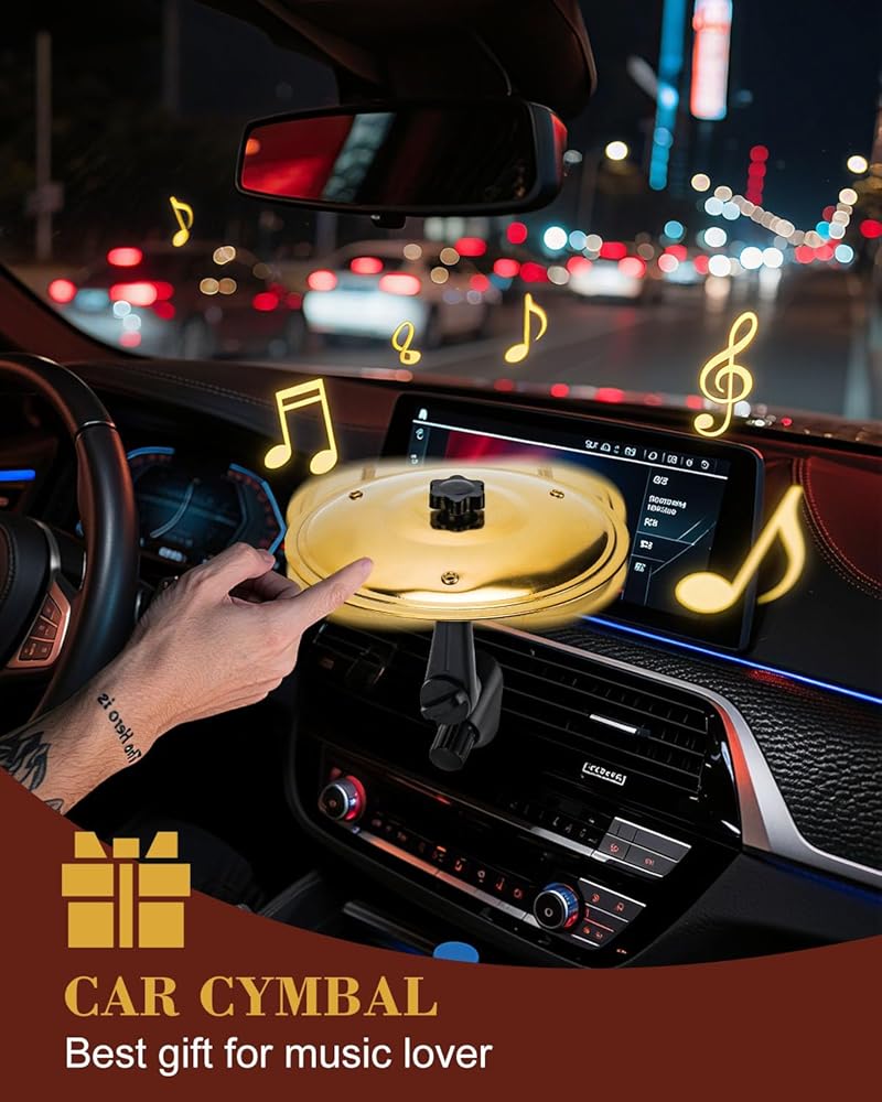 Add a touch of rhythm to your drive with the Car Cymbal Air Vent—the perfect accessory for drummers, music lovers, and anyone who enjoys a bit of creativity while on the road. This mini cymbal set is designed to fit snugly into your car's air vents, transforming any drive into a musical experience. Whether you're struck with inspiration or simply looking for a fun distraction during traffic jams or red light waits, this car cymbal for dash provides the perfect outlet for your musical energy. Crafted to fit most horizontal and vertical car vents, the car cymbal drum air vent is incredibly easy to mount, and its adjustable arm locks it securely in place, allowing you to adjust the angle for optimal drumming comfort. Despite its compact size, the cymbal produces a sharp, metallic resonance, offering a satisfying sound without blocking the airflow or causing distractions. The mini drum set for car is perfect for those moments when you're stuck waiting—be it in traffic, at a stoplight, or during any mundane pause in your journey. This playful accessory allows you to tap out rhythms, create simple beats, and shake off the boredom, all while adding a bit of musical fun to your drive. At the same time, the car crash cymbal is a thoughtful gift for music enthusiasts. Its palm-sized design makes it portable and easy to install, meaning the music lover in your life can enjoy it wherever they go. Whether it's on their daily commute or during a weekend road trip, it's a fun and unique way to spark creativity and improve mood on the go. Give the gift of rhythm with the mini cymbals for car dash, and bring the joy of drumming into your daily drive. Just remember to drive safely and keep the music going!