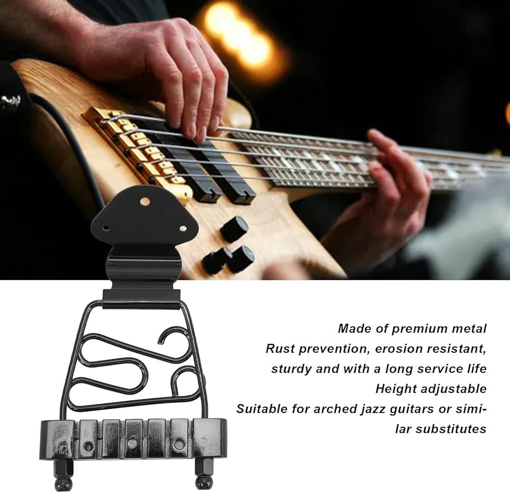 - [ارتفاع قابل للتعديل] قطعة ذيل الجيتار ذات الـ 6 أوتار قابلة للتعديل للارتفاع، مما يجعلها مناسبة لجيتار الجاز أو البدائل المشابهة.