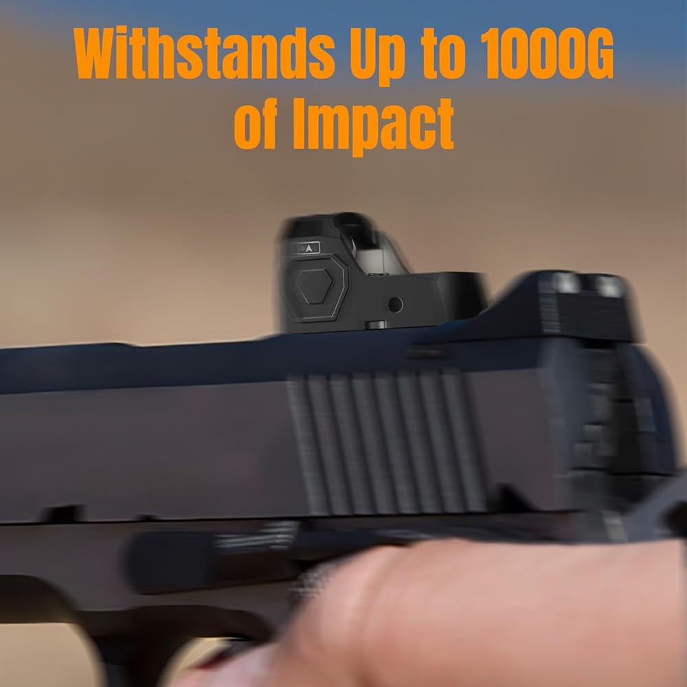 【1000GS Shockproof】Rugged aircraft-grade, extruded aluminum housing ensures the optical glass and internal components are protected against firearm recoil and rough field use.IP65 waterproof, dustproof and fogproof ensuring durability and longevity, this green dot can be used normally in various harsh environments.