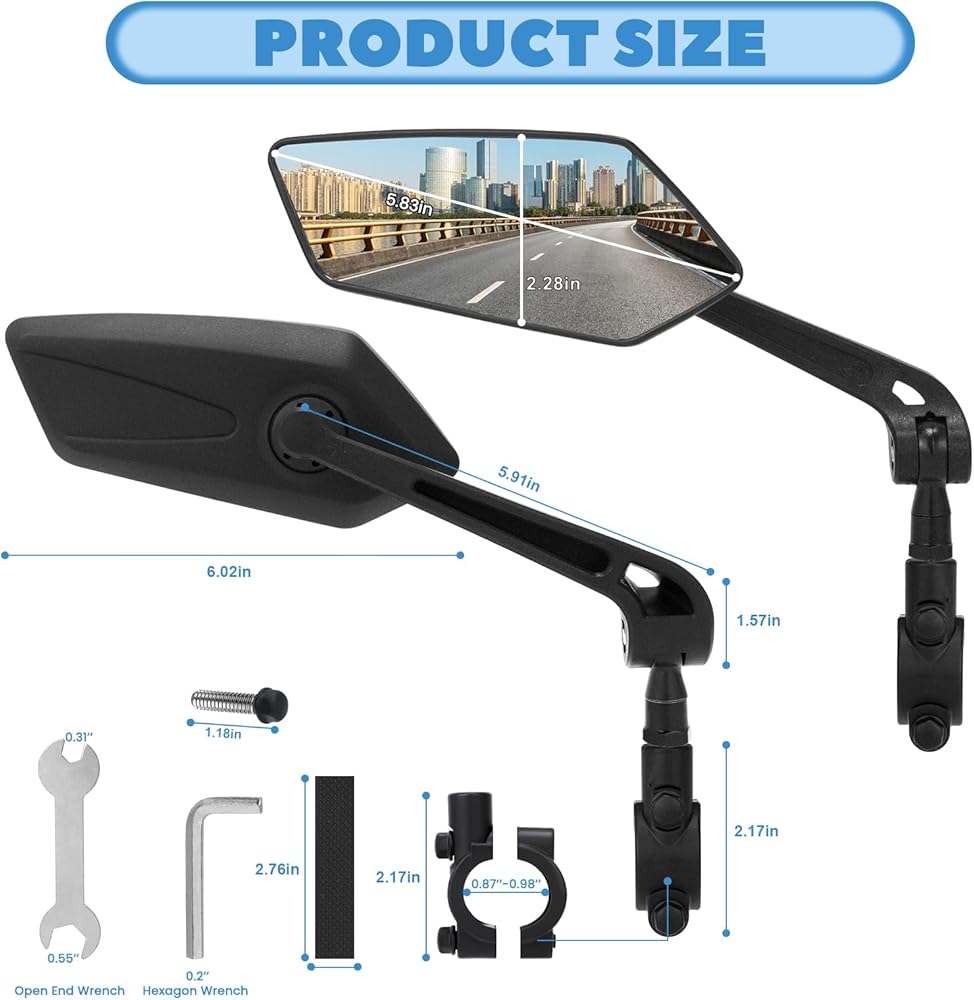 نطاق التطبيق: مرآة الرؤية الخلفية للدراجة مناسبة للمقود بقطر 20 مم - 24 مم، مناسبة للدراجات الجبلية والدراجات الكهربائية والدراجات النارية ودراجات الطرق ودراجات المدينة، إلخ.
