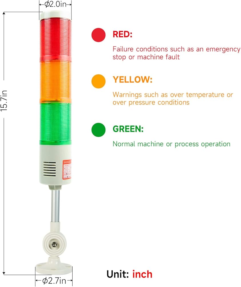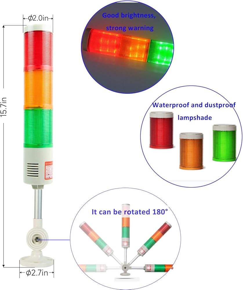 Assembled Design: This Alarm lamp is detachable and can be mounted freely.Round base, with a 135MM height bracket, it's easily viewed at a distance in the workshop