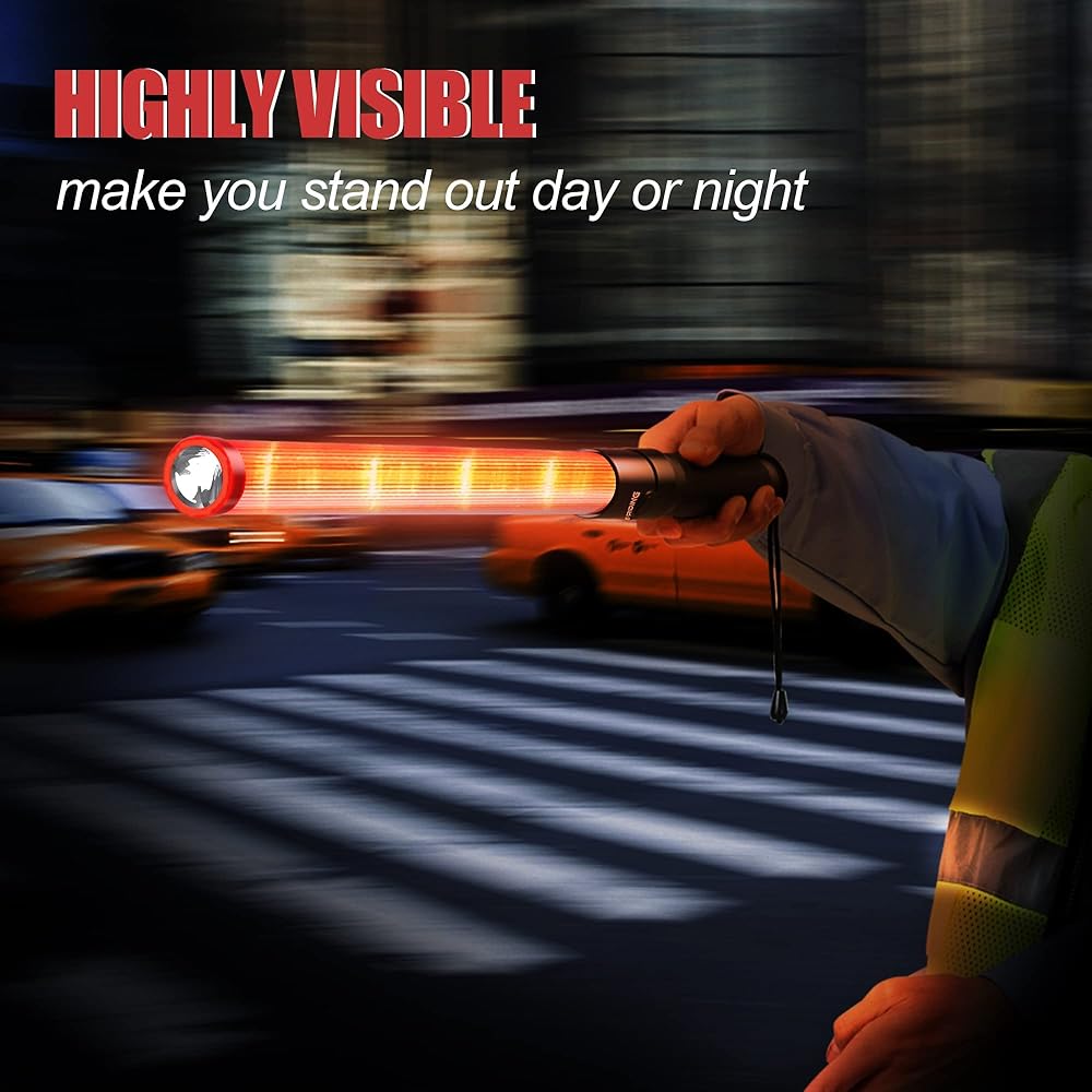 رؤية عالية - يمكن أن يكون سطوع الإخراج 630 لومن، وعصا المرور بطول 21 انش تحتوي على 6 مصابيح LED بالداخل ومصباح علوي واحد. يمكنك ملاحظة جميع أنواع الطقس من الأيام الضبابية والممطرة والثلجية من مسافة طويلة.