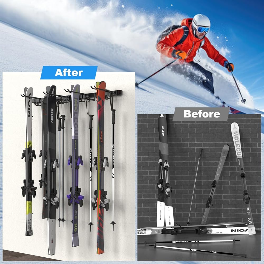 يجب على كل محبي التزلج! : تم تصميم رف التزلج لاستيعاب ما يصل إلى 12 زوجًا من الزلاجات. حافظ على معداتك الشتوية منظمة بشكل أنيق وقم بترتيب مساحتك. تشغل مساحة صغيرة وتقدم عرضًا رائعًا لزلاجاتك الجميلة. لا مزيد من الزلاجات المتراكمة في الزاوية!