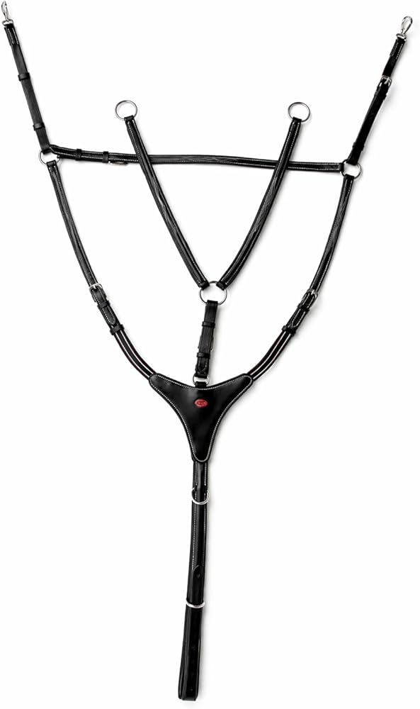 Beautiful two-toned brown english riding breast plate comes fully padded for comfort. Features fancy stitching, and rust free stainless steel hardware. Available in Horse, Cob, and Pony size. Available in Black, and Mahogany.