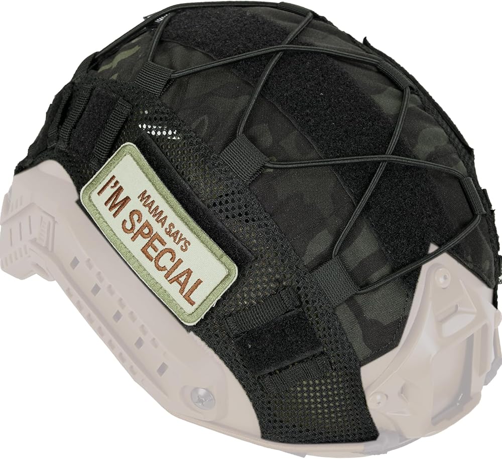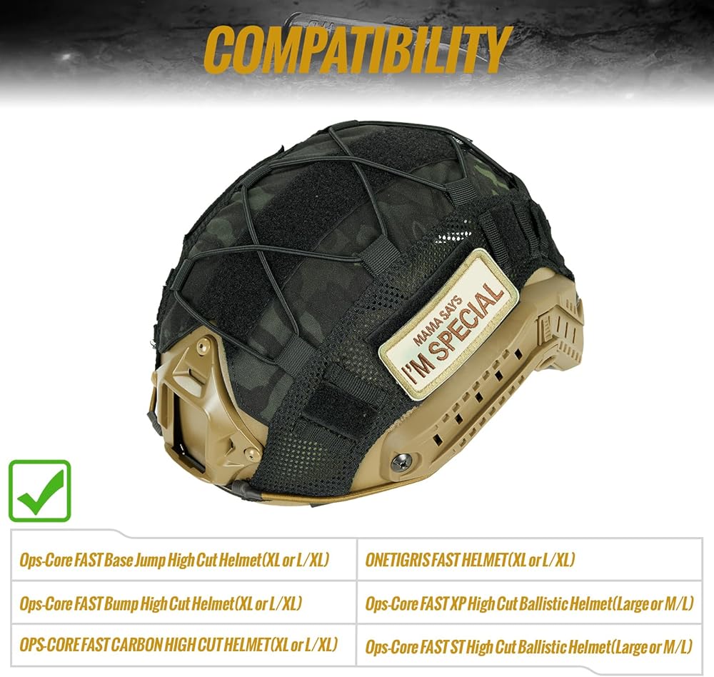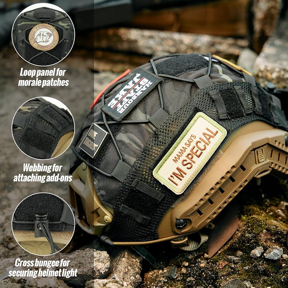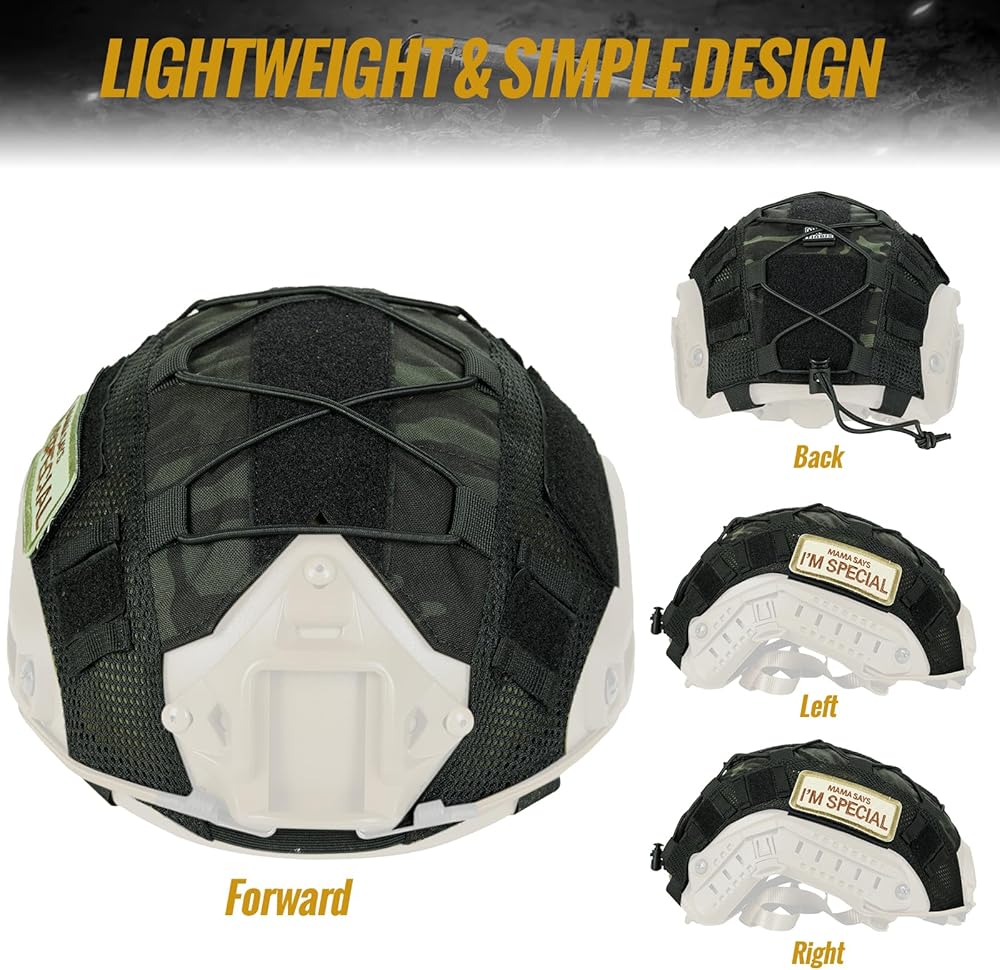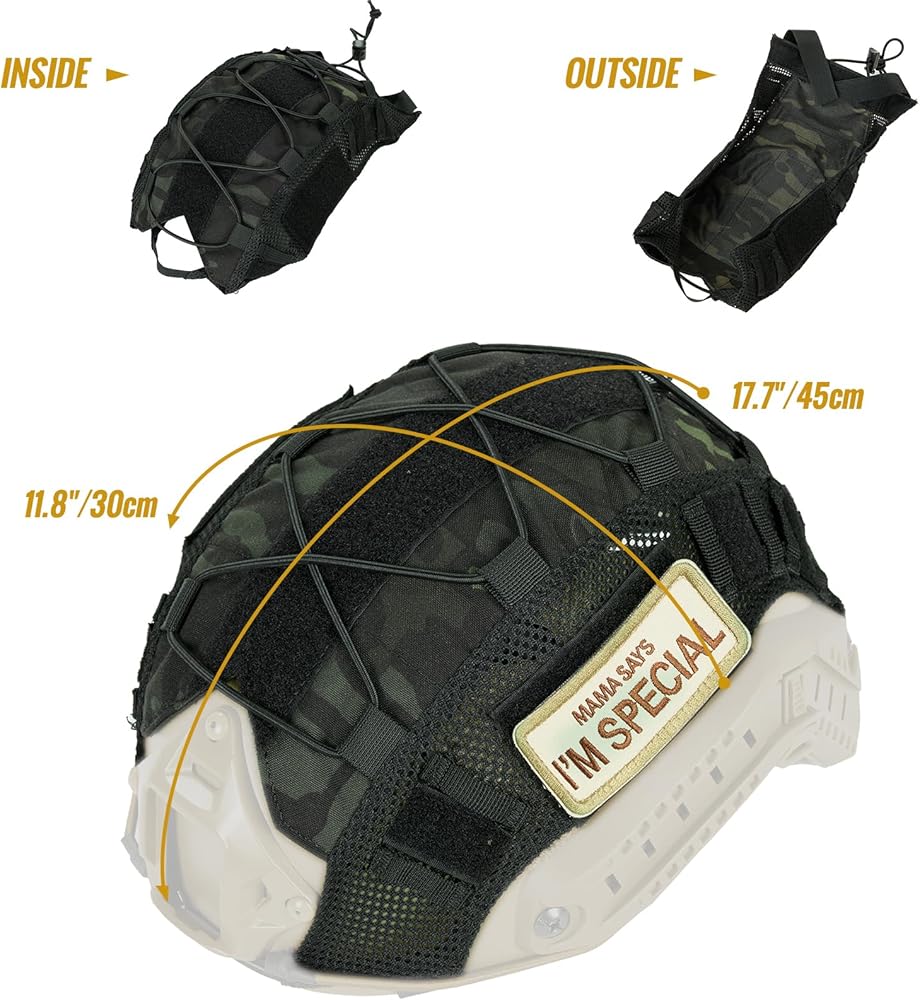 RELIABLE FAST HELMET COVER: Constructed with high-quality 500D Nylon, this airsoft helmet cover offers water resistance and dust-proof performance, ensuring reliable protection in various tactical environments