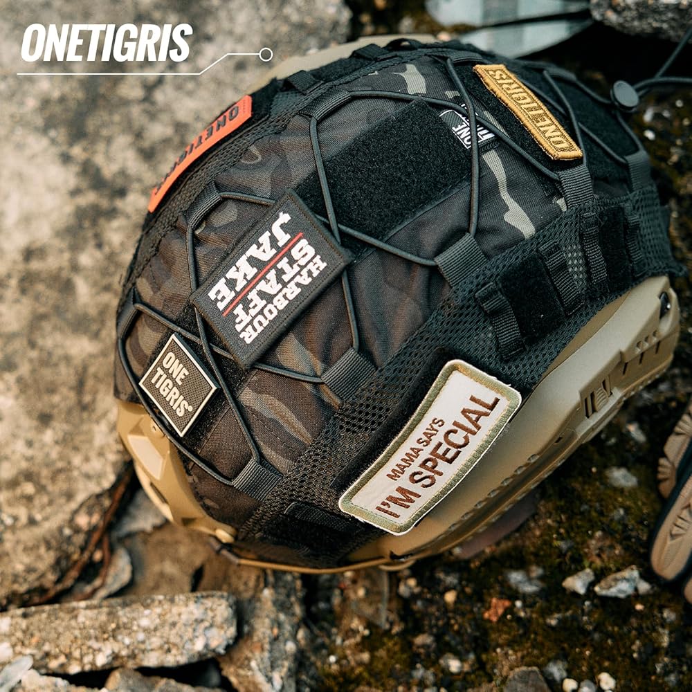 OneTigris HELMET COVER: The military helmet cover fits for Ops-Core Fast Helmet(Size M/L) and FAST Bump Helmet(Size L/XL). The upgraded MOLLE and hook-and-loop system, along with cross-bungee cords, securely combines the cloth helmet cover with your helmet. Safely secure your map and other essential items during intense gameplay