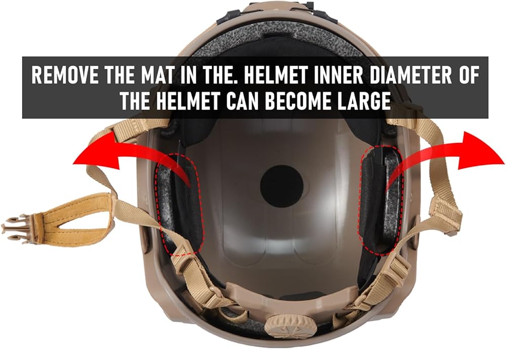 With Velcro panels running along the helmet top, back, and side, you can add different user-preferred patches. A front mount lets you attach brackets for night vision optics, cameras, and lights. Added stability for goggles comes from two bungees, and the helmet side rails let you add different tactical accessories.