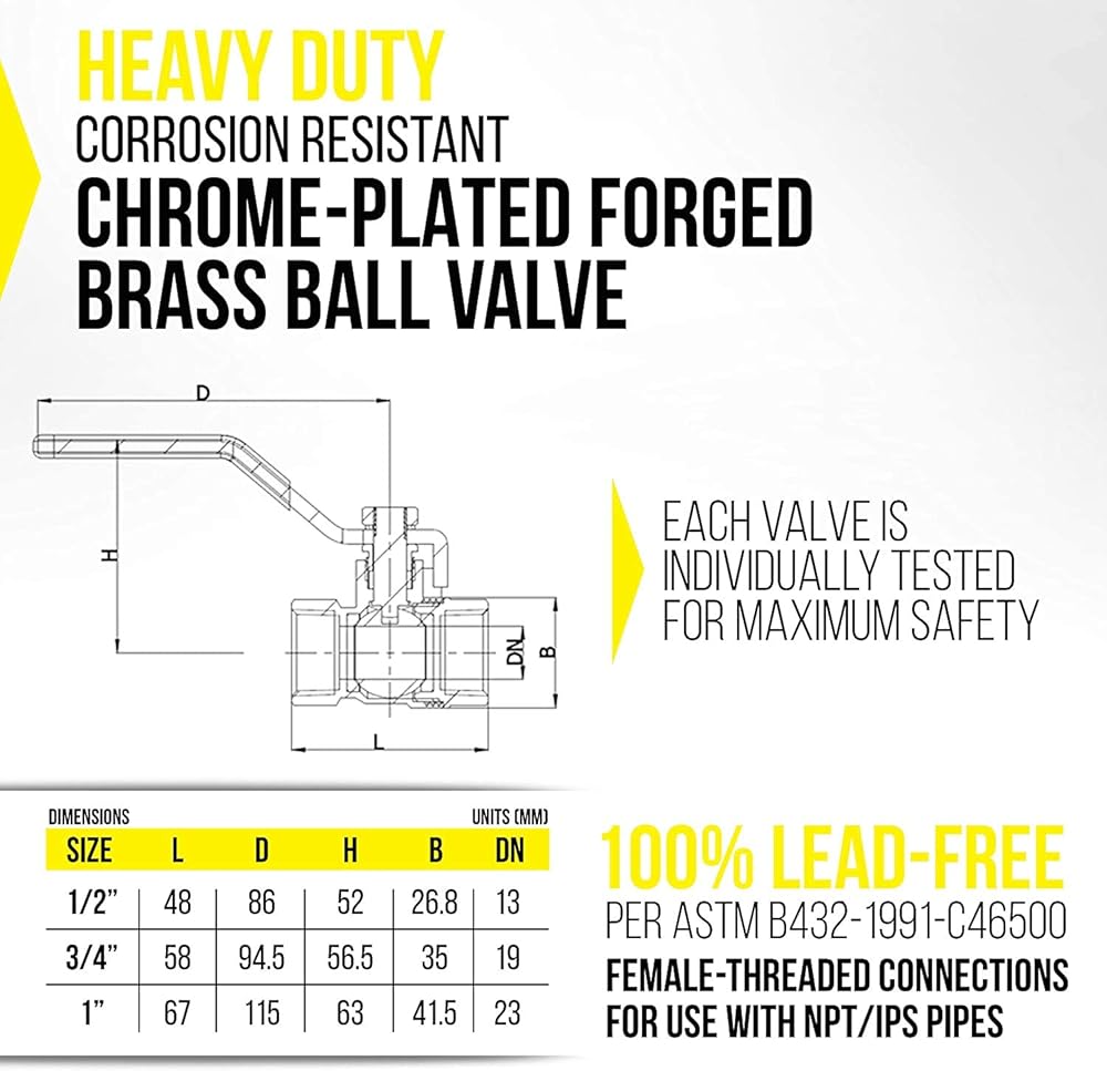 • صمام كروي مطلي بالكروم: يتميز بموصل NPT ملولب أنثى لاتصالات آمنة مانعة للتسرب