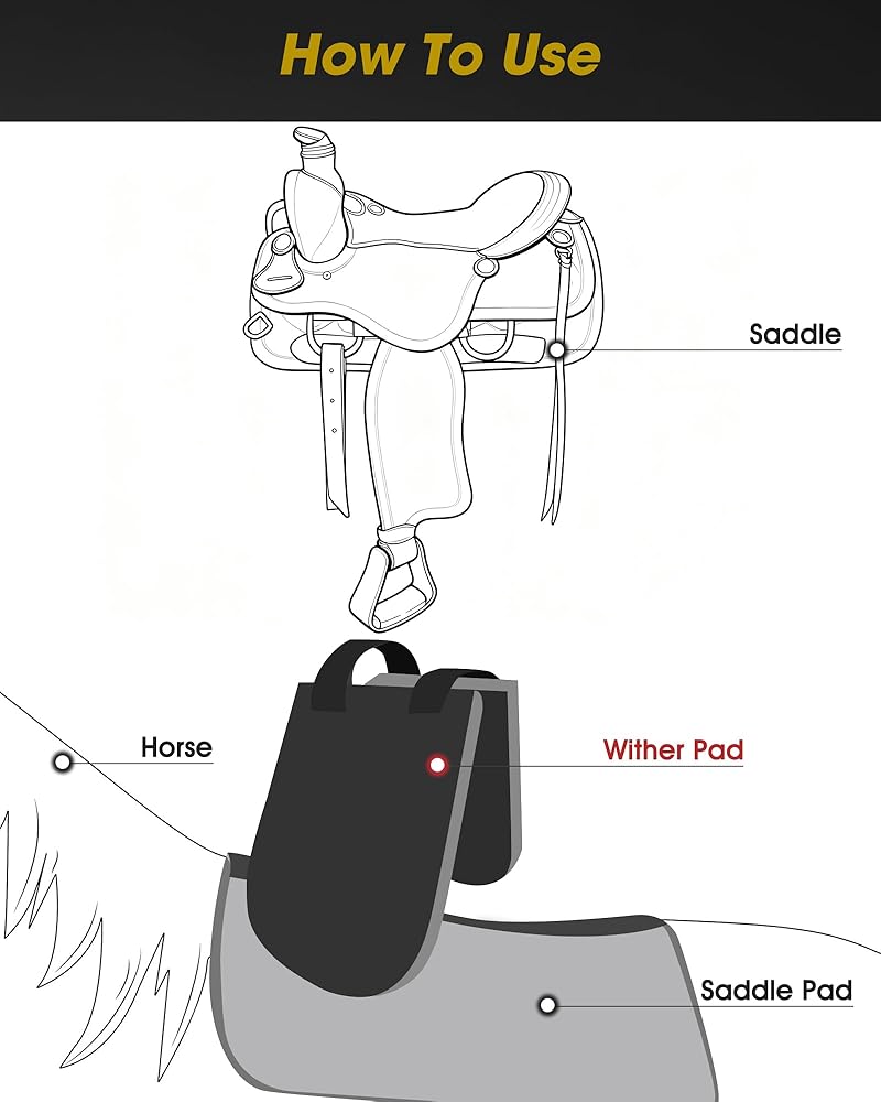 Designed to Fit High-Withered Horses & Reduce Fatigue- Specifically crafted for high-withered horses, this Western saddle pad raises the front of the saddle to avoid pressing the horse's shoulder and trapezius muscles. It redistributes the rider's weight evenly across the horse's back, boosting blood flow and reducing muscle strain. With this horse western saddle pad, your horse tires less quickly, responds better to leads, and stays comfortable even during long hours of activity.
