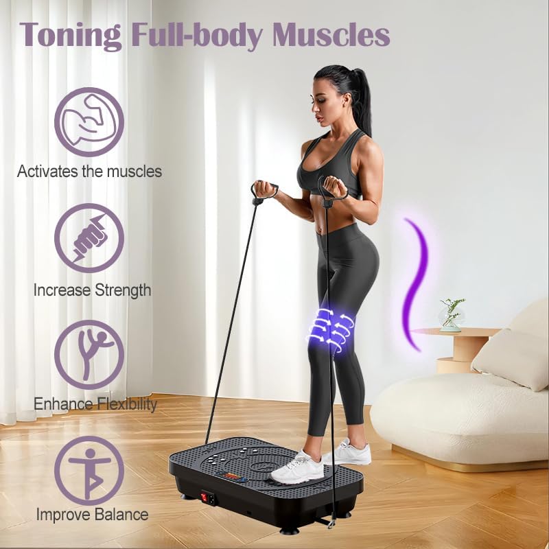 【اهتزاز مزدوج التردد للمبتدئين والمحترفين】تم تصميم لوحة الاهتزاز المنزلية الاحترافية لدينا لتلبية احتياجات اللياقة البدنية الخاصة بك. يعد اهتزازه اللطيف منخفض التردد مثاليًا للمبتدئين - حيث يمكنك بدء رحلة اللياقة البدنية الخاصة بك بسهولة والعمل على تحقيق أهداف فقدان الدهون في المنزل. بالنسبة لمحترفي اللياقة البدنية، يعمل الإعداد عالي التردد على تحسين أداء التمارين بسرعة. وهو يحفز بشكل فعال تقلص العضلات وتنشيطها، مما يساعدك على الوصول إلى أهداف اللياقة البدنية الخاصة بك بشكل أسرع وأكثر كفاءة
