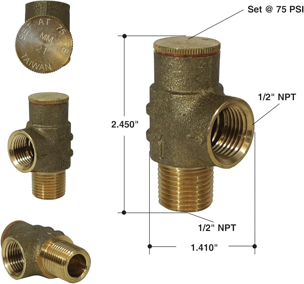 ميريل صمام تخفيف الضغط PRVNL50 من ام اف جي يحمي أنظمة الخزان جيدًا من تراكم الضغط. يوصى باستخدامه على جميع المضخات الغاطسة للحماية من تلف الأنابيب وخزانات الضغط. يلبي التصميم النحاسي الصلب اللوائح الفيدرالية المنخفضة للرصاص. يتم ضبطها على 75 باوند لكل انش مربع وهي قابلة للتعديل إلى 125 باوند لكل انش مربع ** غير مخصصة للاستخدام مع سخانات المياه - أنظمة المياه الباردة فقط