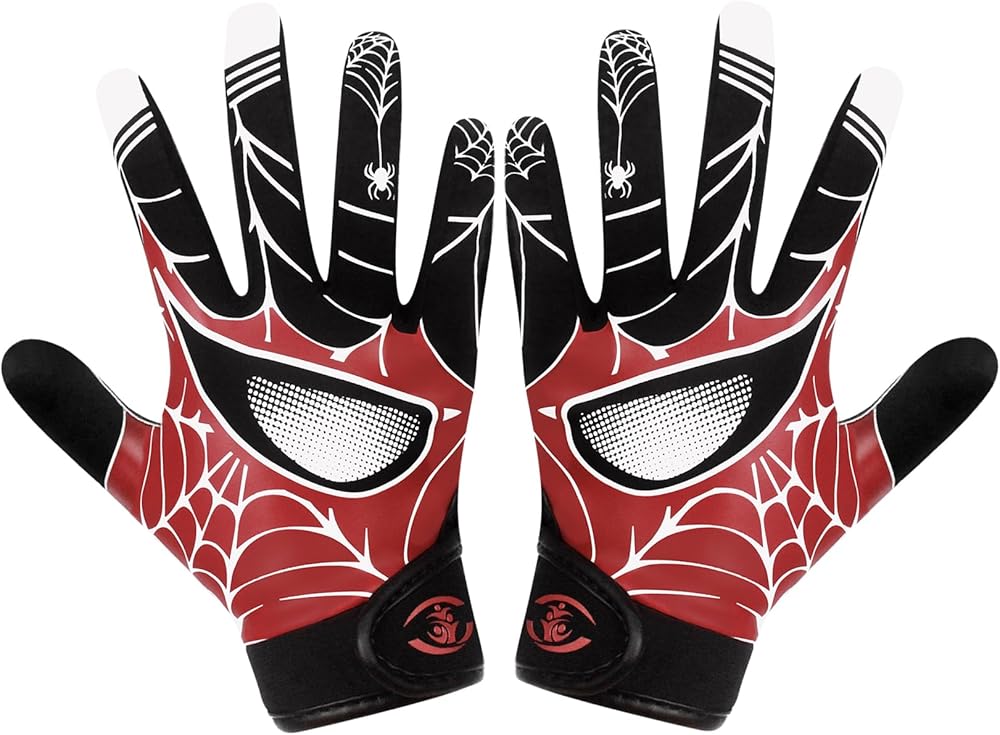 قفازات كرة القدم للشباب، قفازات استقبال رياضية بمقبض سيليكون للأطفال مع قدرة فائقة على الالتصاق لتعزيز تجربة اللعب والتدريب للمبتدئين (عين العنكبوت، 5.5-6 بوصة)