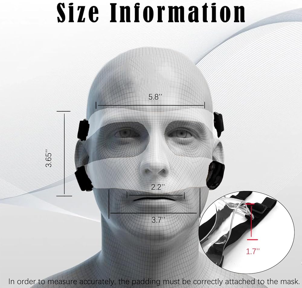 واقي أنف قابل للتعديل للأنف المكسور. يحتوي قناع الأنف على أشرطة قابلة للتعديل ومتوافقة مما يجعله مريحًا ومساميًا، لذلك يمكنك بسهولة ترتيب الضغط والدعم المناسبين. ملاحظات مهمة: يرجى قياس وجهك بعناية قبل الشراء، مع التركيز على التأكد من أن المسافة بين عظام الخد تتطابق تقريبًا مع واقي الأنف.