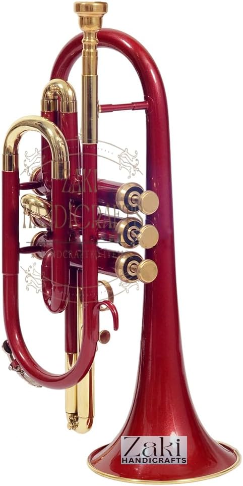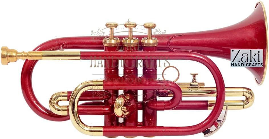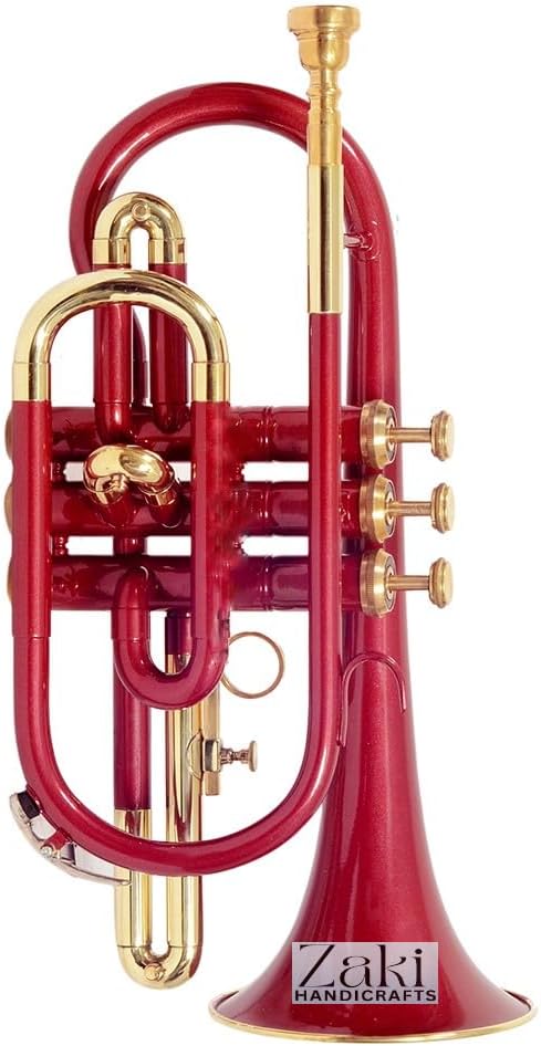بي بي كورنيه 3 صمام نحاس | لمسة نهائية بلون أحمر Bb Pitch Cornet مثالية للطلاب والمبتدئين | مع حافظة صلبة مجانية وقطعة فم وقفازات وقطعة قماش للتنظيف ZAKI HANDICRAFT