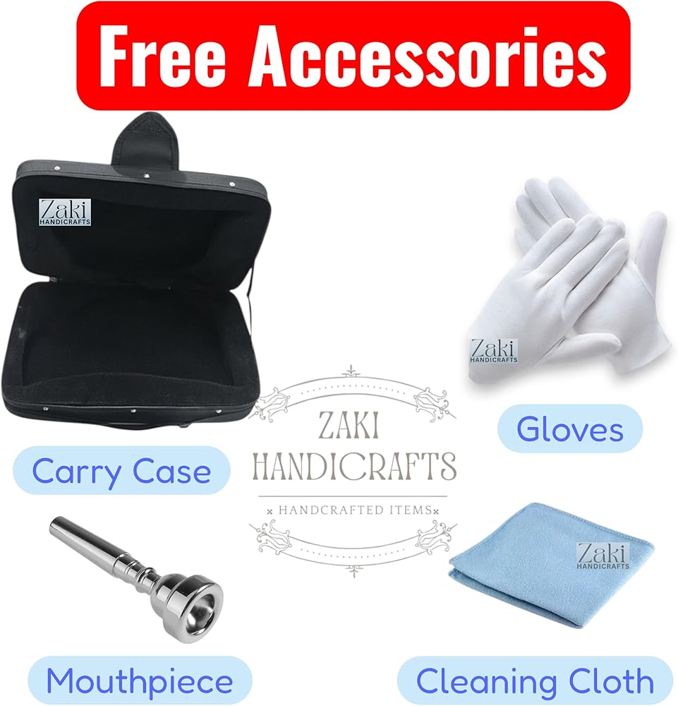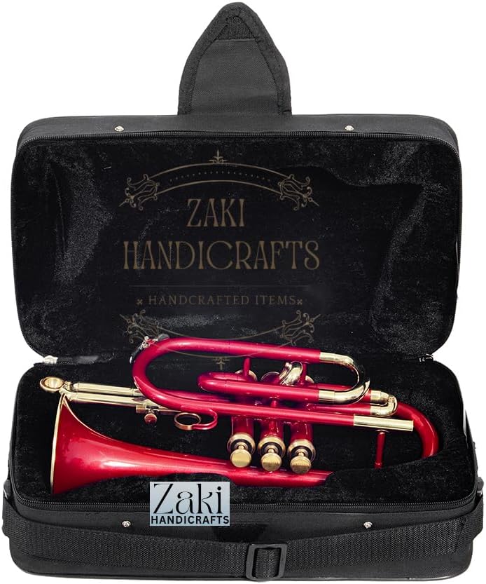 ZAKI HANDICRAFT presents this high-quality Bb Cornet, meticulously crafted from durable brass, making it the perfect musical companion for students, beginners, and players of all levels. This cornet is tuned to the standard Bb pitch, ensuring a beautiful, melodious, and rich sound. The combination of its three smooth-action valves enhances your overall playing experience, providing excellent responsiveness and a seamless feel. The high-quality brass construction features an exquisite design that is both durable and visually appealing. Each cornet comes with a premium-quality mouthpiece for optimal sound production. We also include a free hard case, gloves, and a cleaning cloth to help you protect and maintain your instrument. This is an ideal starter pack for anyone embarking on their musical journey.