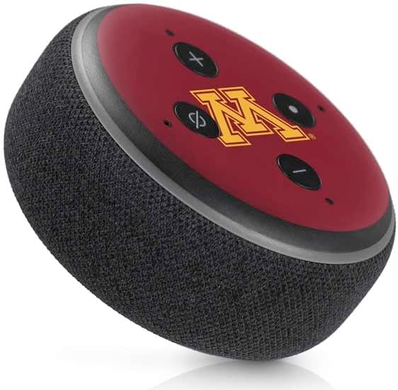 غلاف صوتي من Skinit متوافق مع Amazon Echo Dot 3 - تصميم شعار جامعة مينيسوتا M المرخص رسميًا