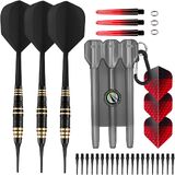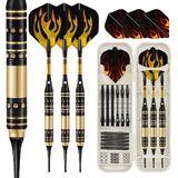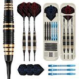مجموعة رمي السهام الناعمة: تتضمن مجموعة رمي السهام هذه كل ما تحتاجه للعب رمي السهام. يمكنك الحصول على 3 براميل نحاسية موزونة بدقة، و6 أعمدة من الألومنيوم المتين، و3 أعمدة بلاستيكية احتياطية، و6 أجنحة قياسية بتصميمين فريدين، و6 ملفات زنبركية، و8 واقيات طيران، و10 أطراف ناعمة قابلة للاستبدال، و9 حلقات دائرية مطاطية إضافية مضادة للارتخاء لتأمين المكونات والتخلص من الرخاوة.