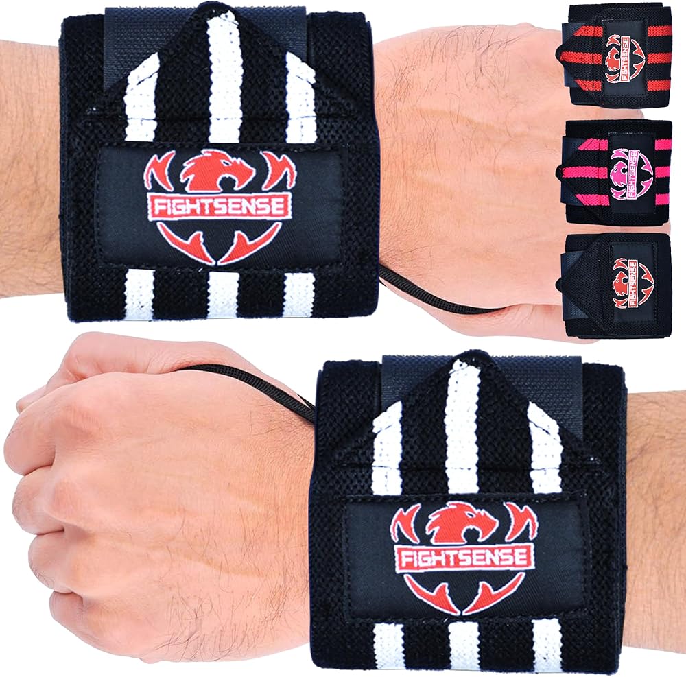 أغطية معصم FIGHTSENSE لرفع الأثقال، أحزمة معصم عالية الجودة مقاس 45.72 سم مع أغطية معصم شديدة التحمل بحلقة إبهام في صالة الألعاب الرياضية لرفع الأثقال، رفع الأثقال، تدريب القوة، كمال الأجسام، دعامة المعصم