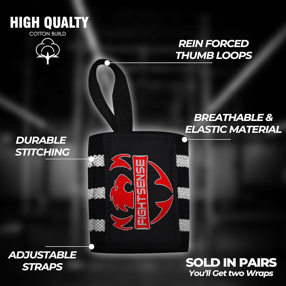 ✅ تصميم متين ومريح: مصنوعة من مواد عالية الجودة ومسامية، تم تصميم أغطية المعصم FIGHTSENSE لتحمل الاستخدام الكثيف مع الحفاظ على راحتك. تتميز أحزمة المعصم الفاخرة هذه بخياطة متينة تضمن ارتداءً يدوم طويلاً، مما يجعلها مثالية للاستخدام المنتظم في صالة الألعاب الرياضية.