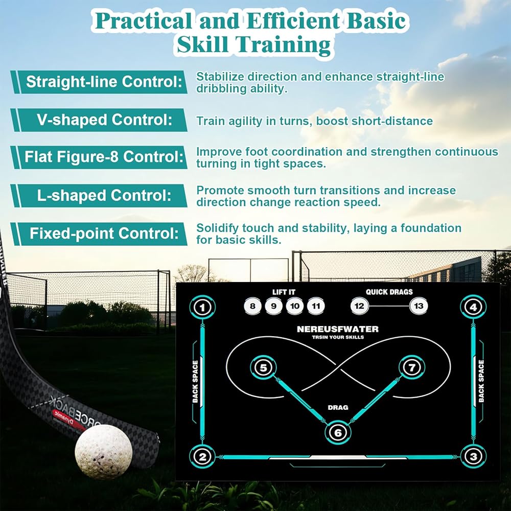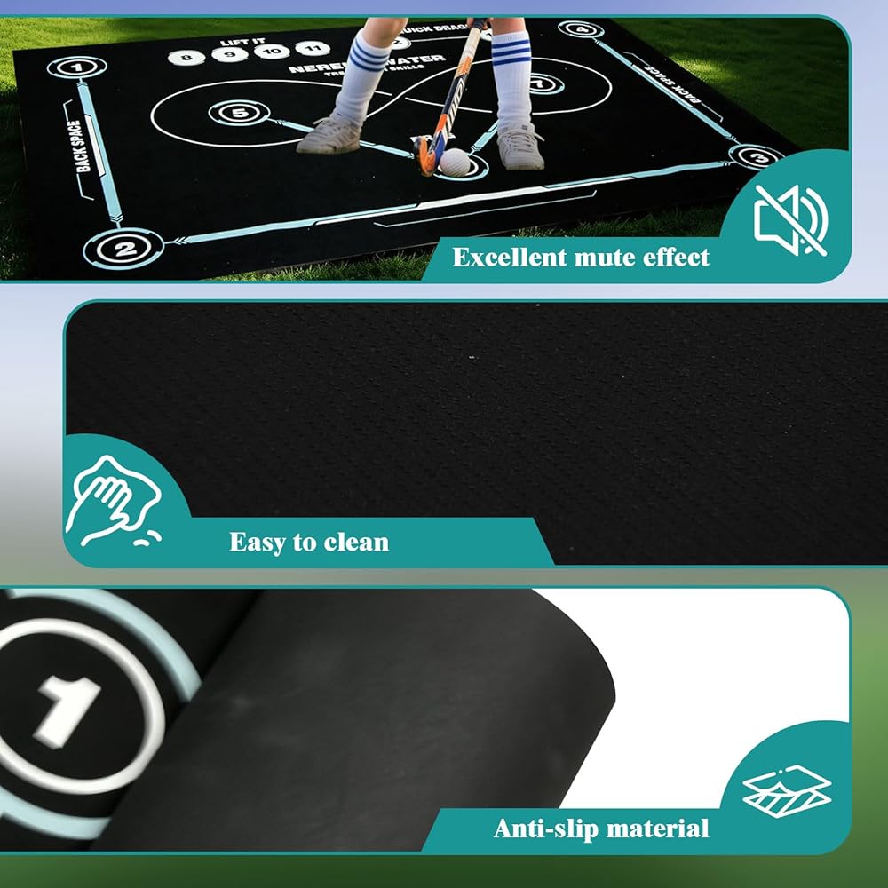 1. تصميم مضاد للانزلاق وهادئ: مصنوع من مطاط عالي الجودة مع نسيج مضاد للانزلاق وتقليل فعال للضوضاء، معدات تدريب الهوكي هذه مثالية لممارسة المناورة والمراوغة في المنزل أو في الهواء الطلق دون إزعاج الآخرين.