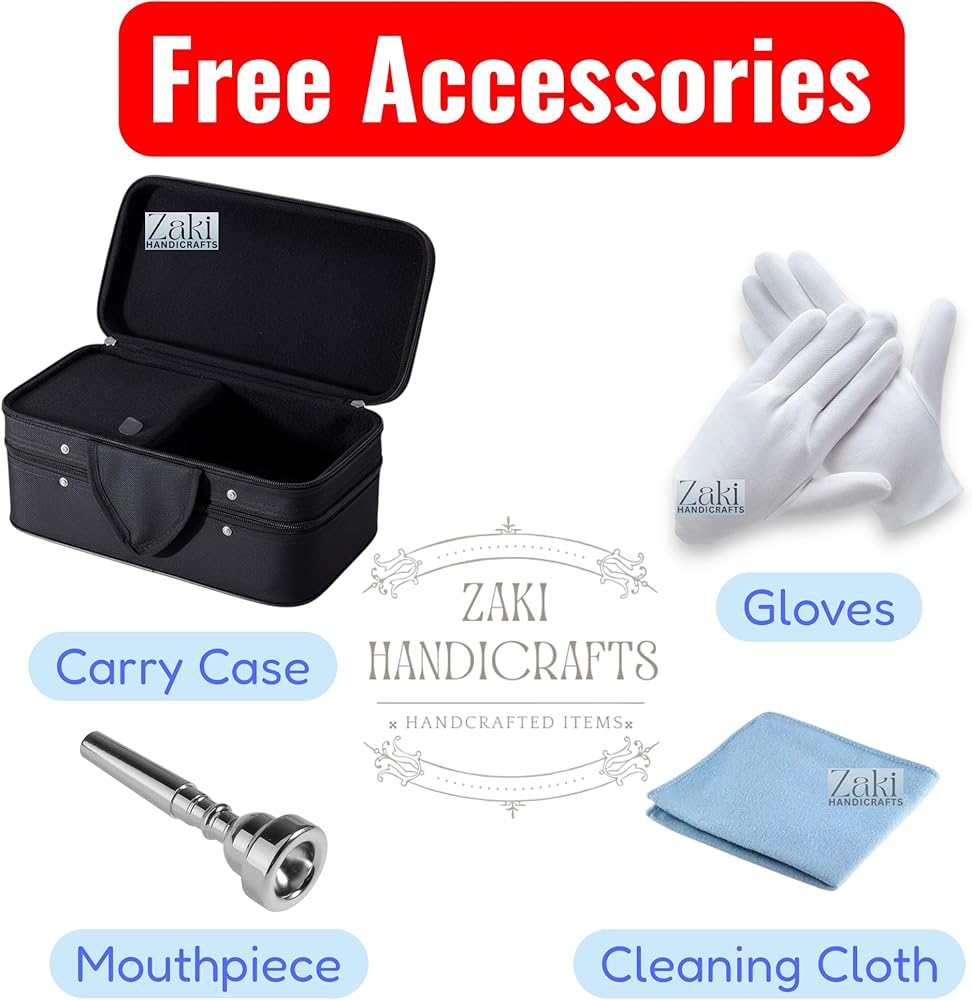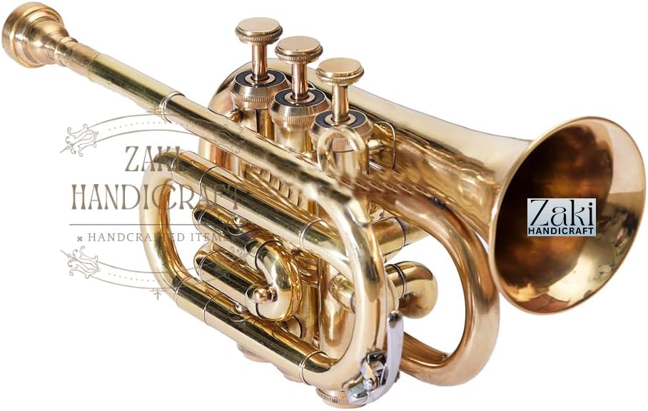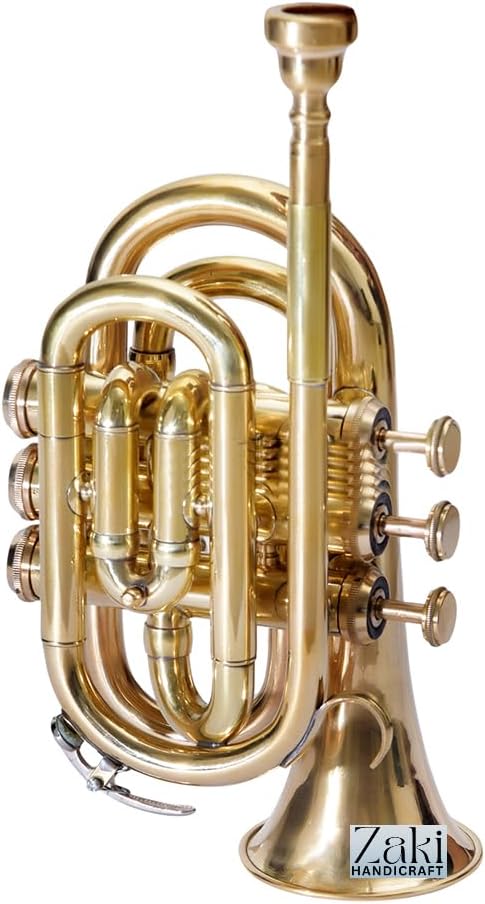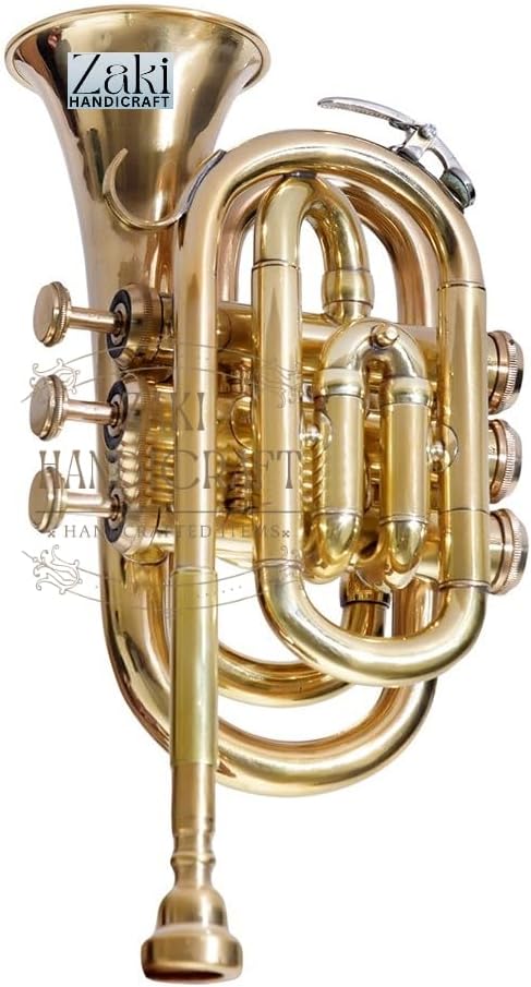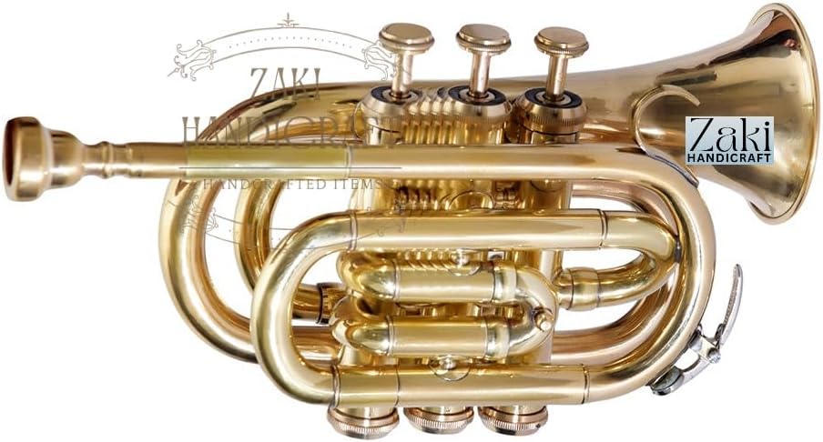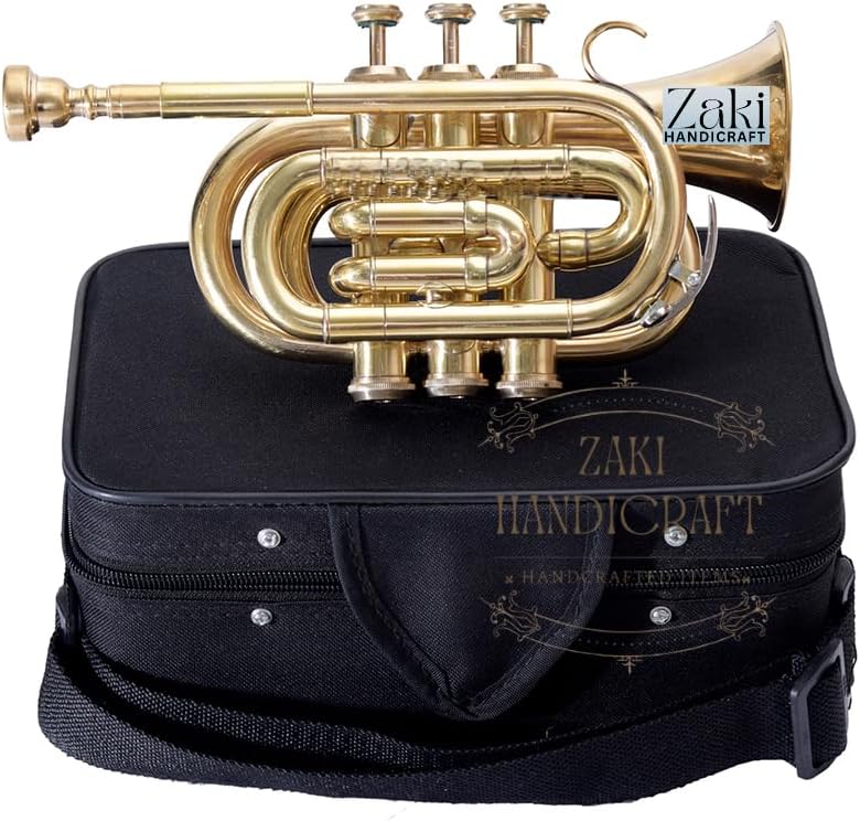 ZAKI HANDICRAFT presents a meticulously crafted Bb Pocket Trumpet, perfect for students and beginners embarking on their musical journey. This instrument combines classic brass construction with a unique and eye-catching finish. Its 3 smooth-action valves ensure a responsive and reliable playing experience, making it an excellent choice for developing proper technique. This complete package includes everything you need to get started right away. The durable hard case provides superior protection for your instrument, while the included mouthpiece, gloves, and cleaning cloth make maintenance simple and easy. Important Note : If any custom duty, import fees, or taxes that may be levied upon the item's arrival in the buyer's country are the sole responsibility of the buyer. These charges are payable by the buyer at their end only.