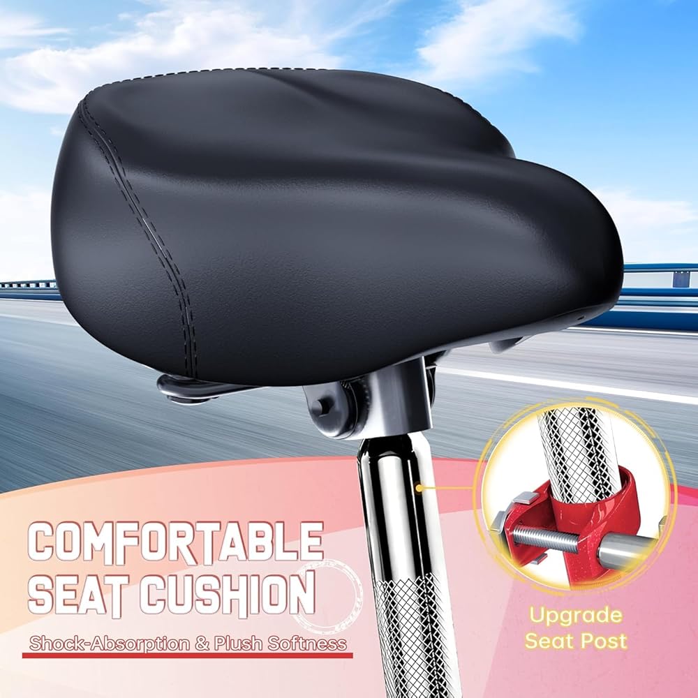 • سلة خلفية كبيرة مريحة: تأتي دراجة الطراد هذه للبالغين مع سلة خلفية كبيرة متينة يمكنها دعم ما يصل إلى 50 رطلاً؛ مثالية لحمل البقالة والأغراض الشخصية ولوازم النزهة والحيوانات الأليفة وغيرها من الأشياء