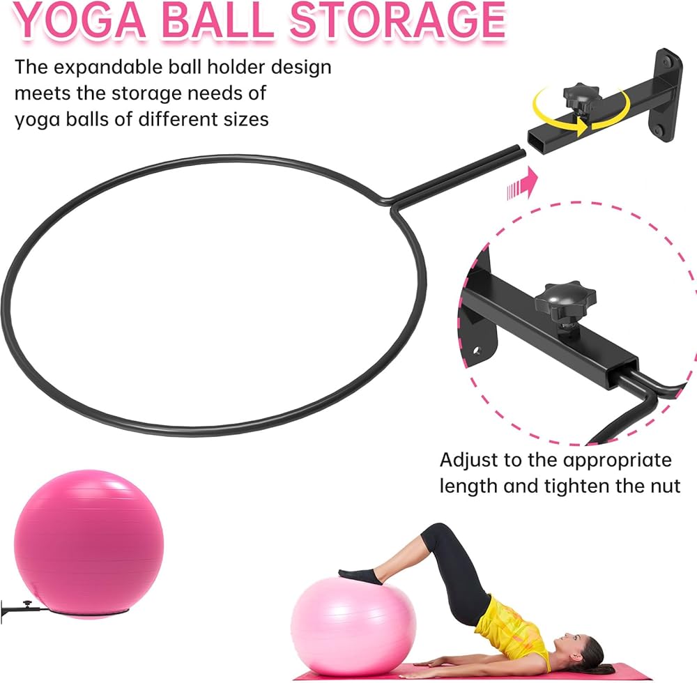【تصميم موفر للمساحة】قم بتحرير مساحة الأرضية عن طريق تركيب حامل كرة اليوجا هذا على أي جدار. قم بتنظيم منطقة اللياقة البدنية الخاصة بك بكفاءة مع الحفاظ على تخزين كرات التمرين ومعدات الصالة الرياضية خفيفة الوزن بشكل أنيق.