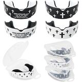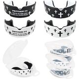 ما الذي يمكنك الحصول عليه: ستحصل على إجمالي 4 واقيات للفم و4 حقائب تخزين شفافة. يبلغ مقاس كل واقي فم حوالي 2.28 × 1.85 × 0.75 بوصة. تأتي واقيات الفم في تصميمين - صليب وآية من الكتاب المقدس، كل منها متوفر باللونين الأسود والأبيض. يأتي كل واقي فم مع حقيبة تخزين للحفاظ على واقي الفم الرياضي الخاص بك آمنًا وسهل التخزين.