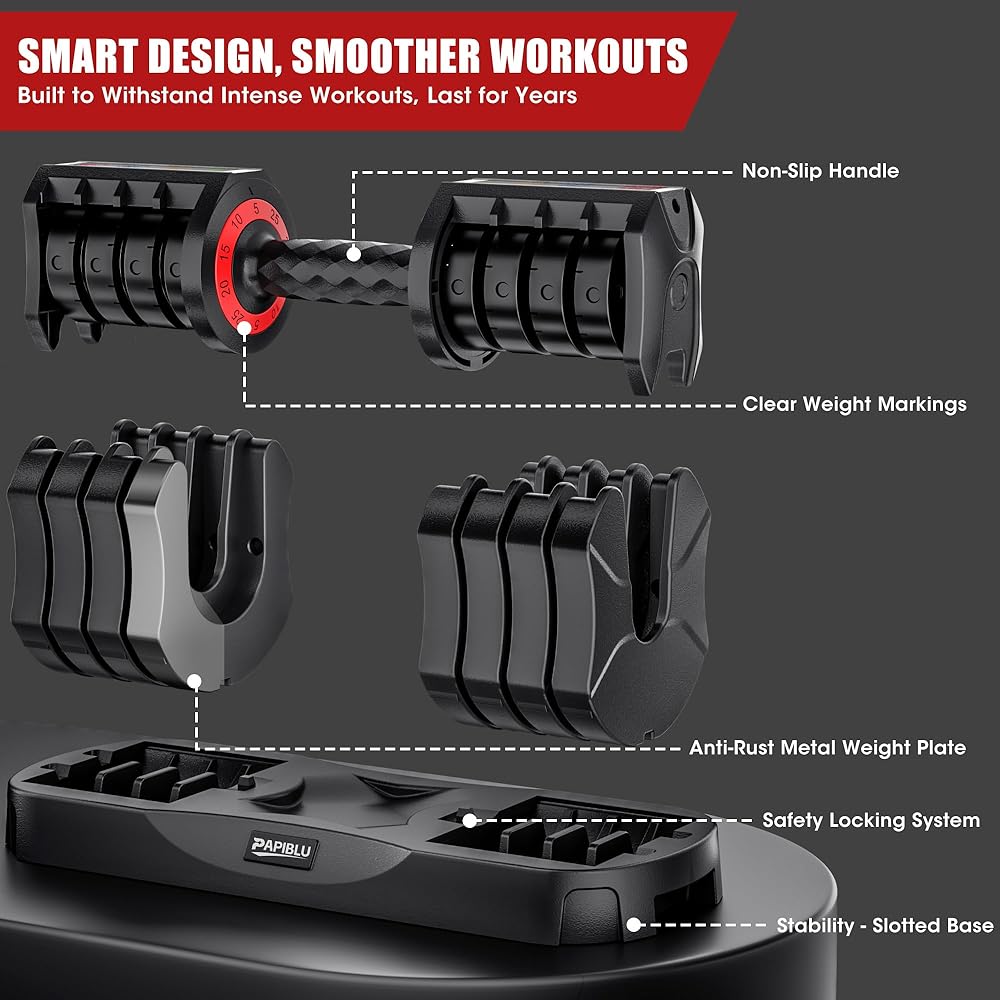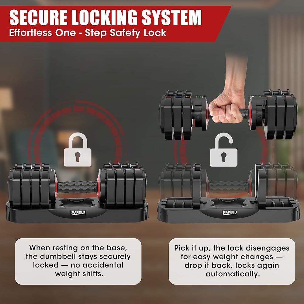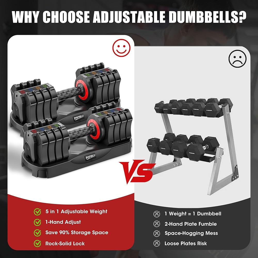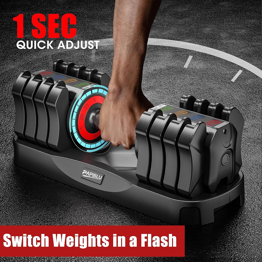 【تعديل سريع للوزن في ثانية واحدة】لا يوجد تفكيك أو محاذاة معقدة - فقط قم بلف المقبض بيد واحدة (بينما يكون الدمبل على القاعدة) لتبديل الأوزان على الفور. يتيح لك الضبط السلس الانتقال بين التمارين (مثل تمرين ثني العضلة ذات الرأسين إلى الضغط على الكتف) دون توقف، مما يحافظ على كفاءة التمرين وتركيزه.