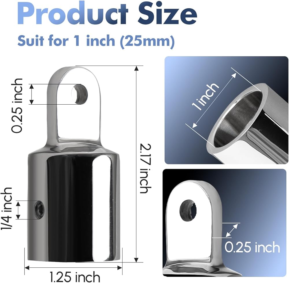 الأجهزة العلوية للقارب بيميني، الفولاذ المقاوم للصدأ 316 Marine Bimini Top Cap تركيبات نهاية العين الخارجية، تناسب أنابيب مستديرة 7/8 بوصة 1 بوصة 1-1/4 بوصة (معرف النهاية بواسطة CNC)