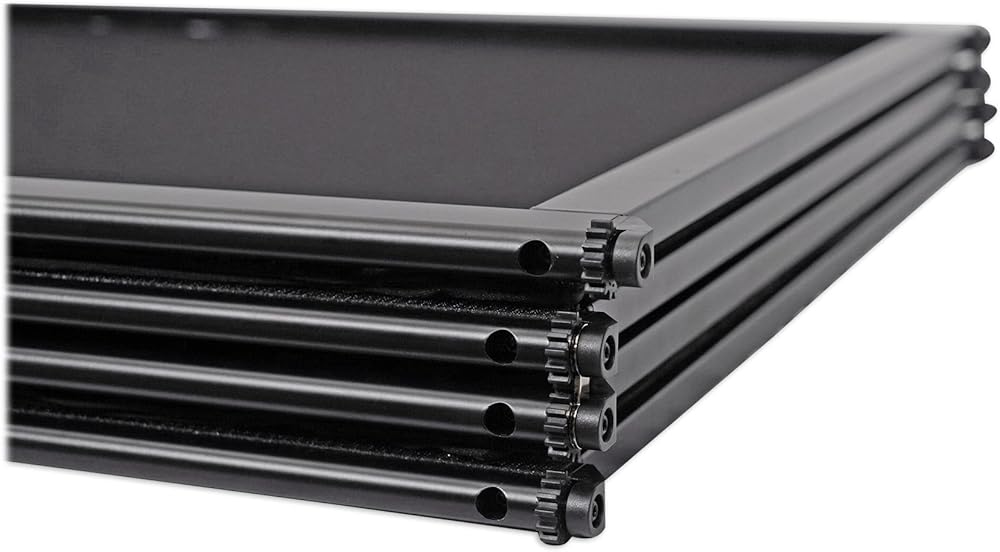 إطار من الألومنيوم خفيف الوزن: - يزن Rockville RFAAC 7 أرطال فقط، ويستخدم الألومنيوم المتين، مما يوفر قوة فائقة على المنافسين الفولاذيين الأثقل لسهولة النقل والإعداد في الأحداث.