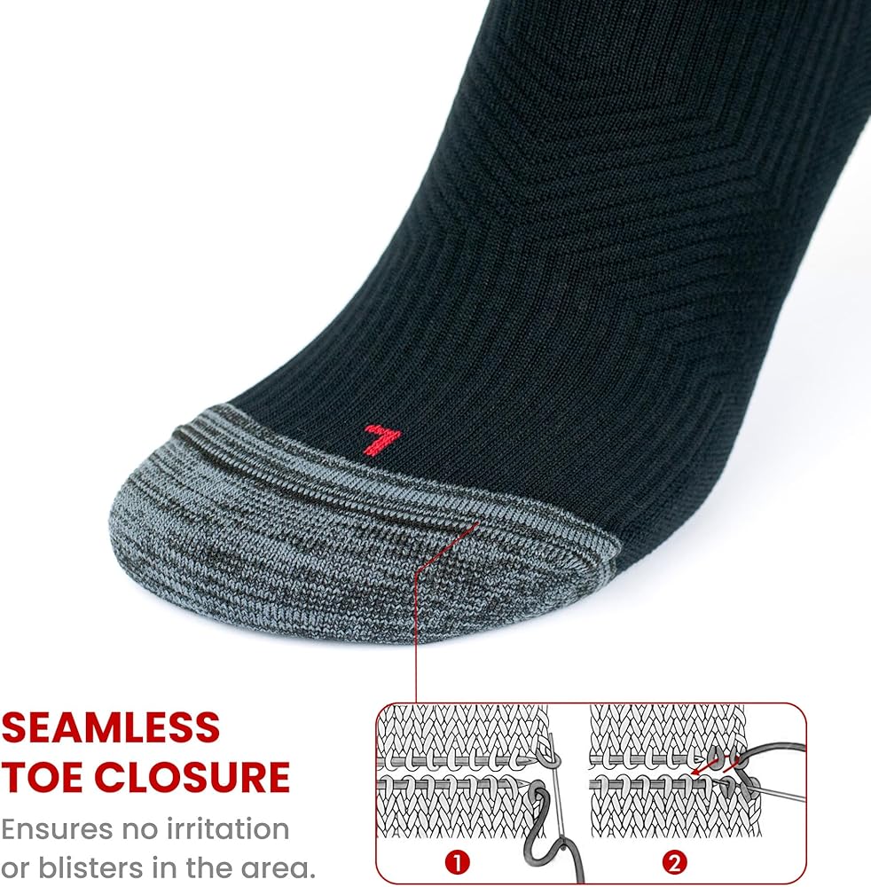 • راحة خالية من الاحتكاك: قل وداعًا لعدم الراحة والبثور مع تصميم الجوارب الرياضية الضاغطة بدون خياطة عند أصابع القدم. يزيل التصميم بدون خياطة أي نقاط احتكاك أو تهيج، مما يوفر ملاءمة سلسة ومريحة. يمكنك التركيز على أدائك دون تشتيت الانتباه، والاستمتاع بكل حركة براحة ودعم لا مثيل لهما.