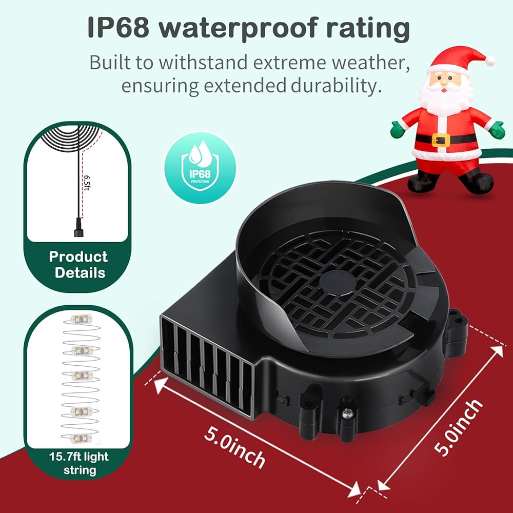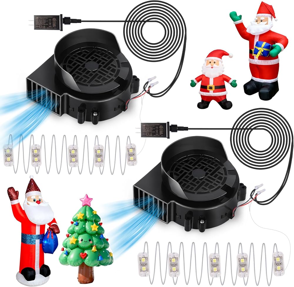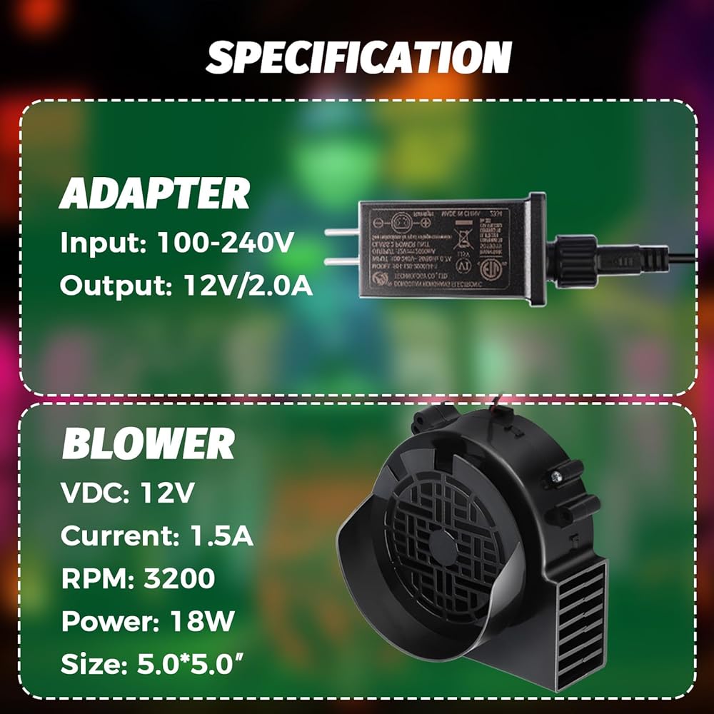 [خيارات طاقة متعددة الاستخدامات] مزود بمحول طاقة 12 فولت/1.0 أمبير، وطاقة مروحة 12 فولت/0.85 أمبير، وتوفير 10 وات، يدور هذا المنفاخ بسرعة 4500 دورة في الدقيقة. كما أنها تتميز بـ 3 لوحات إضاءة LED، كل منها تحتوي على خرزتين LED، بالإضافة إلى سلسلة إضاءة بطول 6.5أقدام لمزيد من الإضاءة.