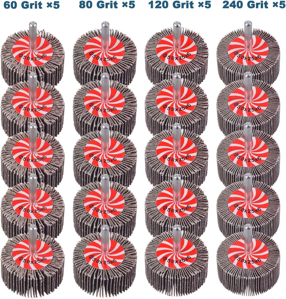 مجموعة 20 قطعة من أدوات الصنفرة ذات العجلات الكاشطة، عجلات قلابة من Mixflor مقاس 2 بوصة × 1 بوصة × 1/4 بوصة - 5 قطع من كل منها 60 80 و120 و240 حبيبة لأداة صنفرة عجلة رفرف من أكسيد الألومنيوم للحفر