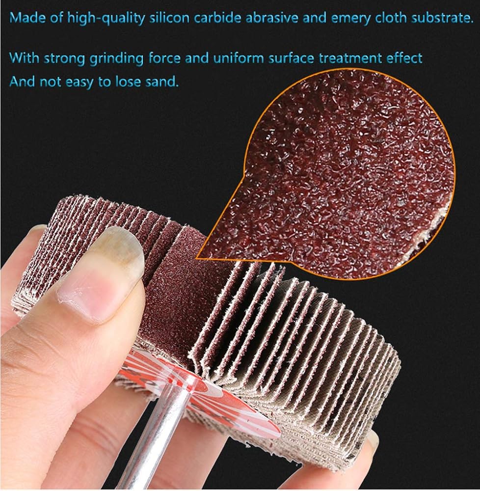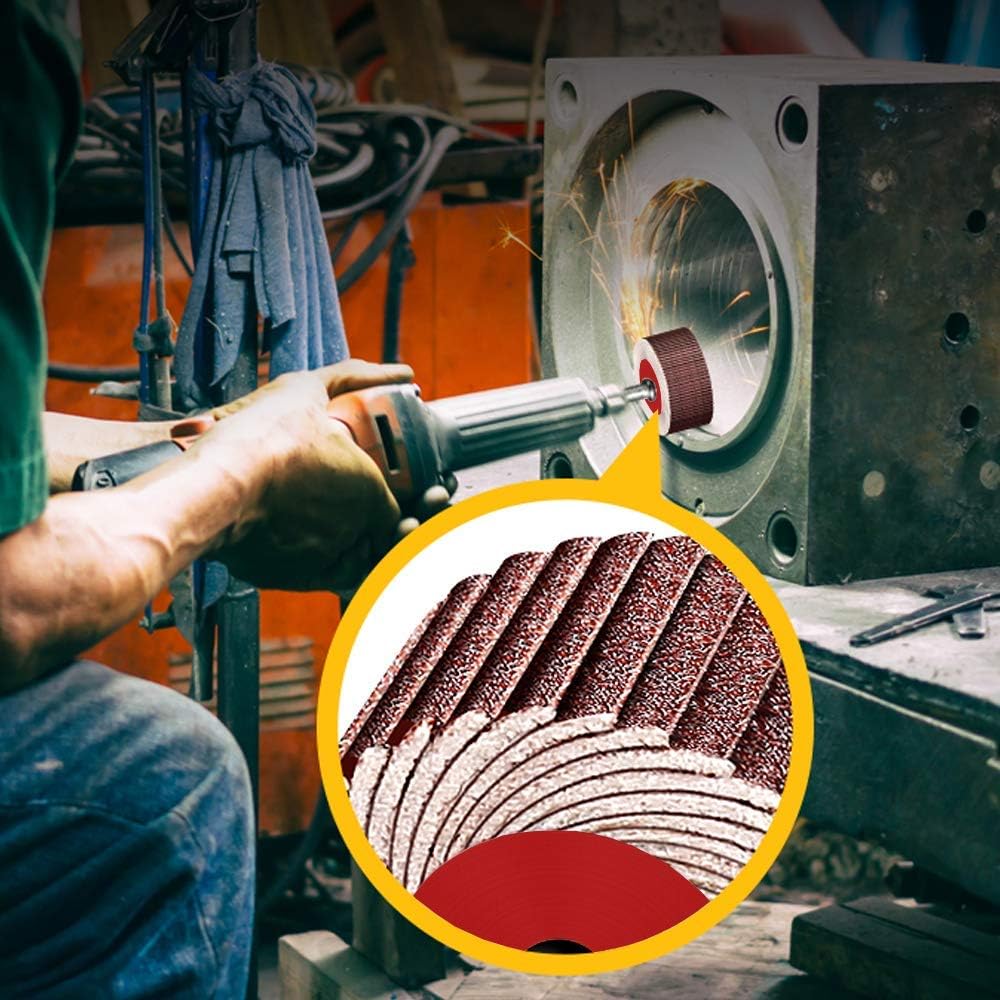 【Quality Material】These mounted flap wheel sanders are made from high performance aluminum oxide grain and metal, with nice abrasive coating for working effectiveness.