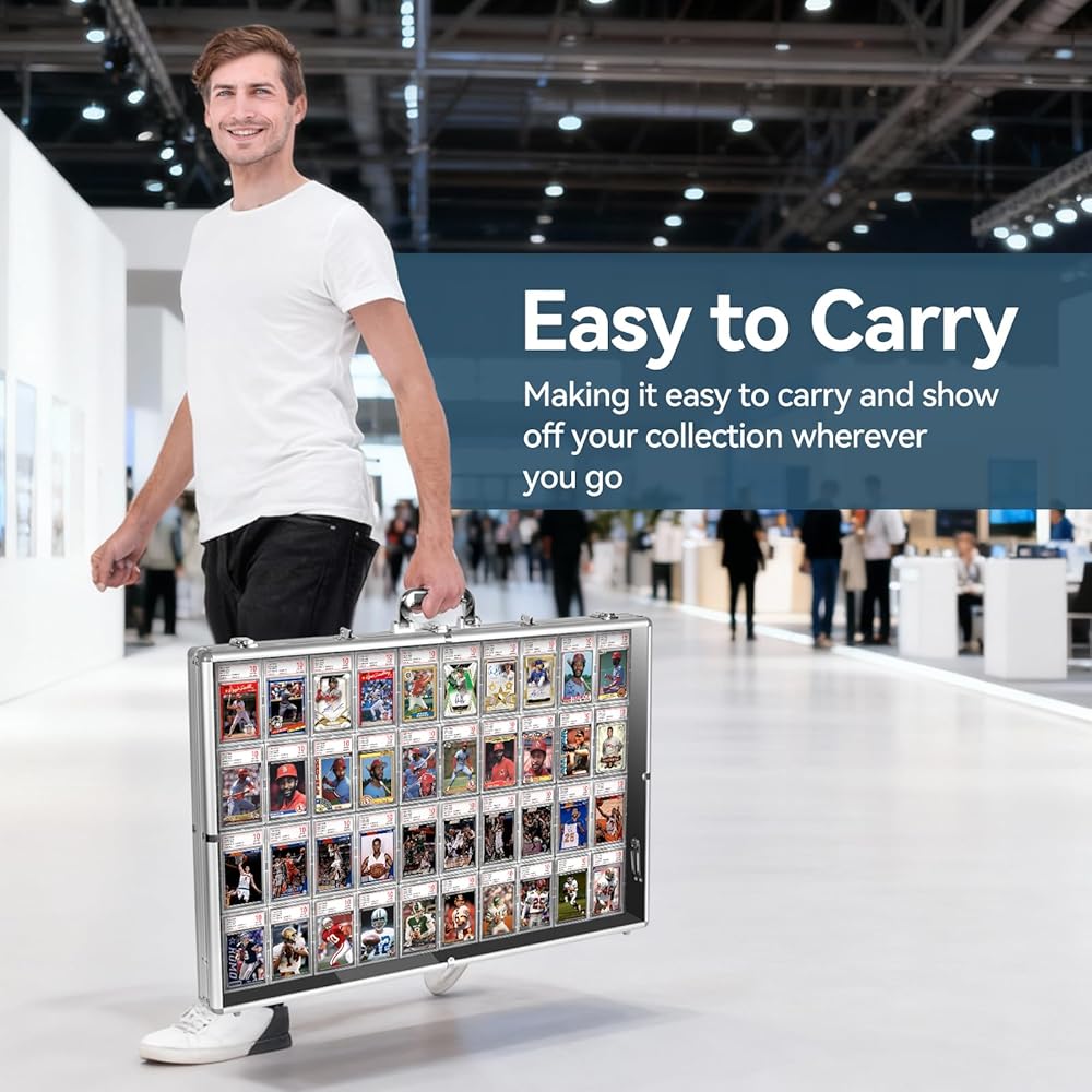 تصميم محمول: تتناسب حافظة عرض البطاقات الرياضية هذه بشكل مثالي مع مقبض قوي، مما يجعل من السهل حمل مجموعتك وعرضها في أي مكان.