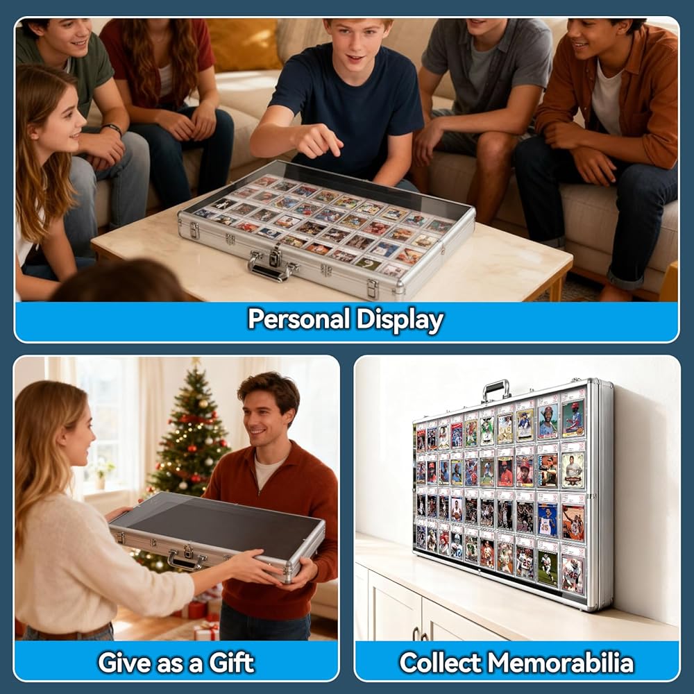 حافظة عرض متعددة الاستخدامات: تعتبر حافظة عرض بطاقات التداول هذه مثالية لعرض بطاقات التداول والبطاقات الرياضية وبطاقات البيسبول وبطاقات PSA المتدرجة والساعات والعملات المعدنية والمجوهرات في المعارض التجارية، كما أنها هدية مثالية لهواة الجمع في أعياد الميلاد أو في عيد الميلاد.
